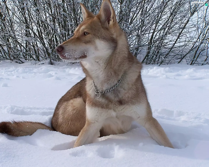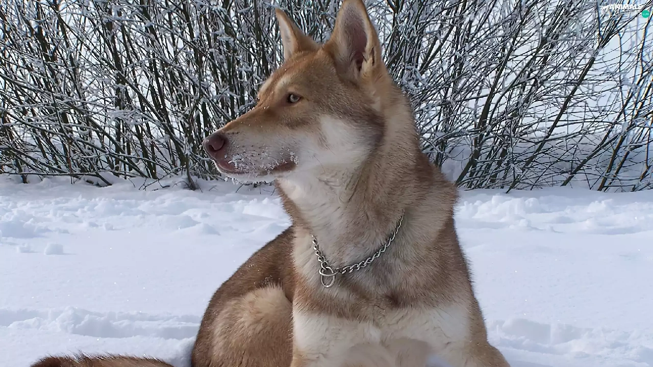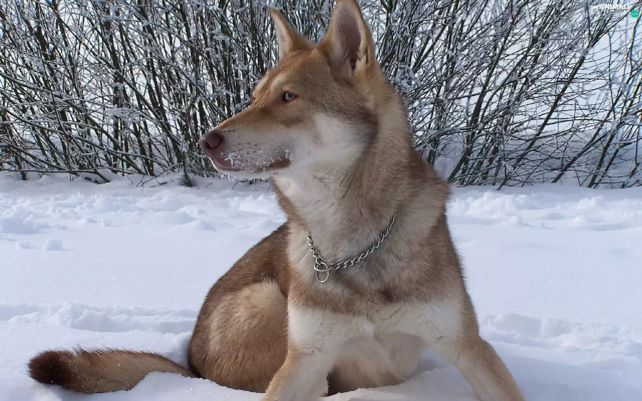 Bushes, Saarlooswolfhond, snow