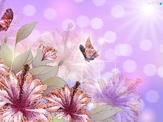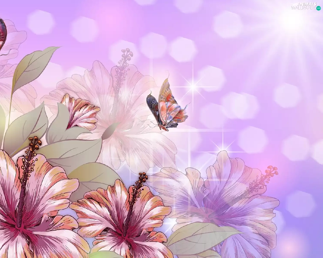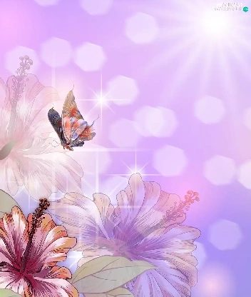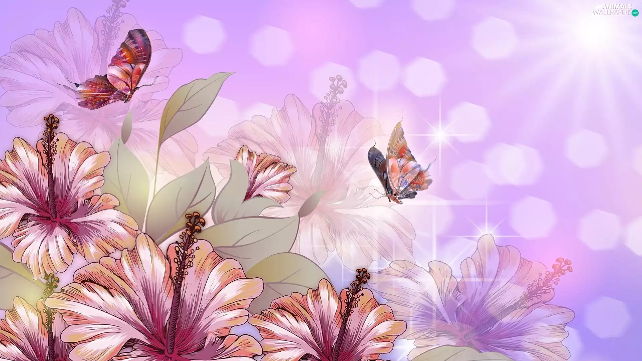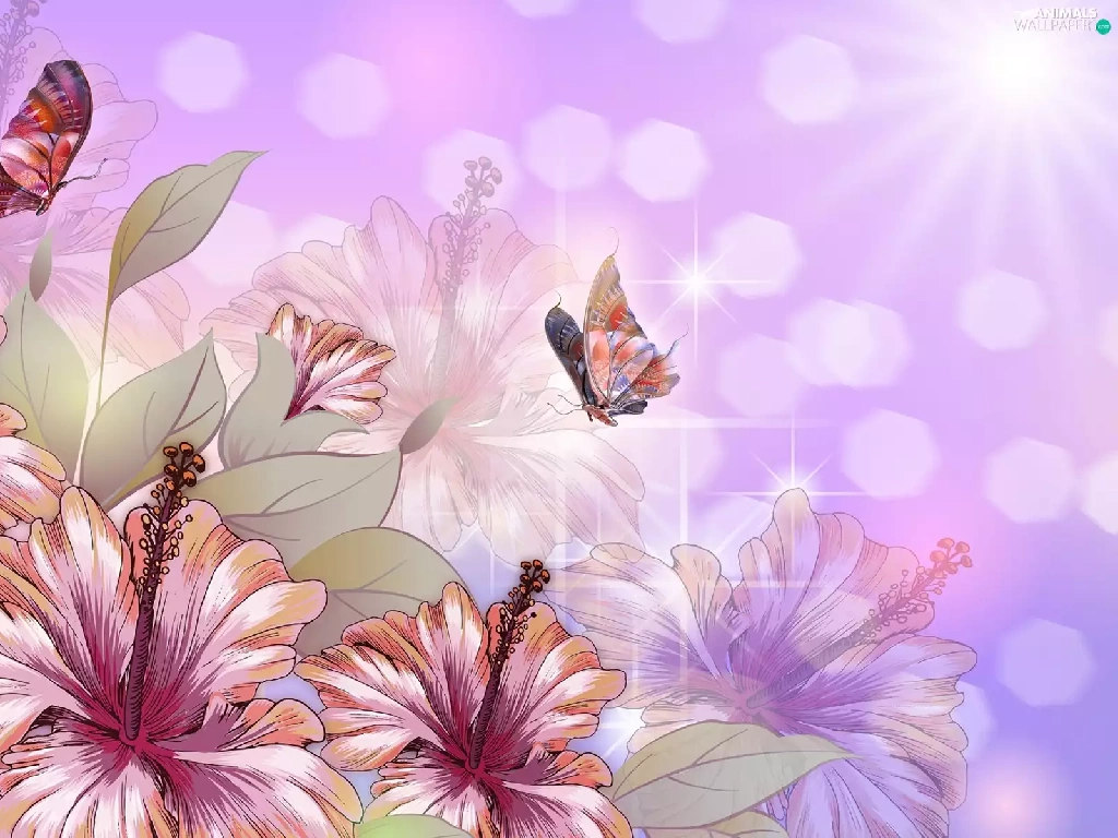 Flowers, butterflies, 2D Graphics, hibiskus