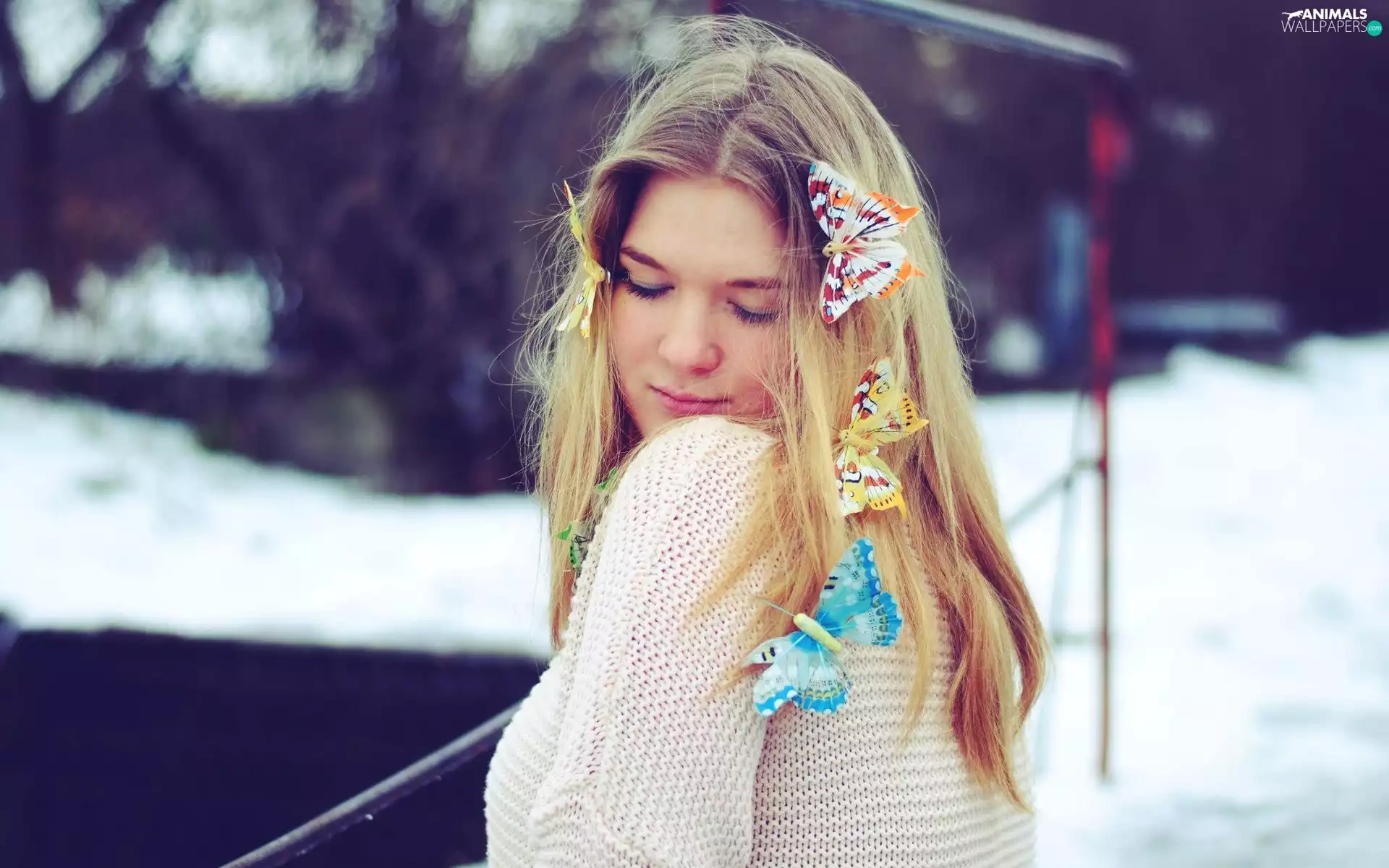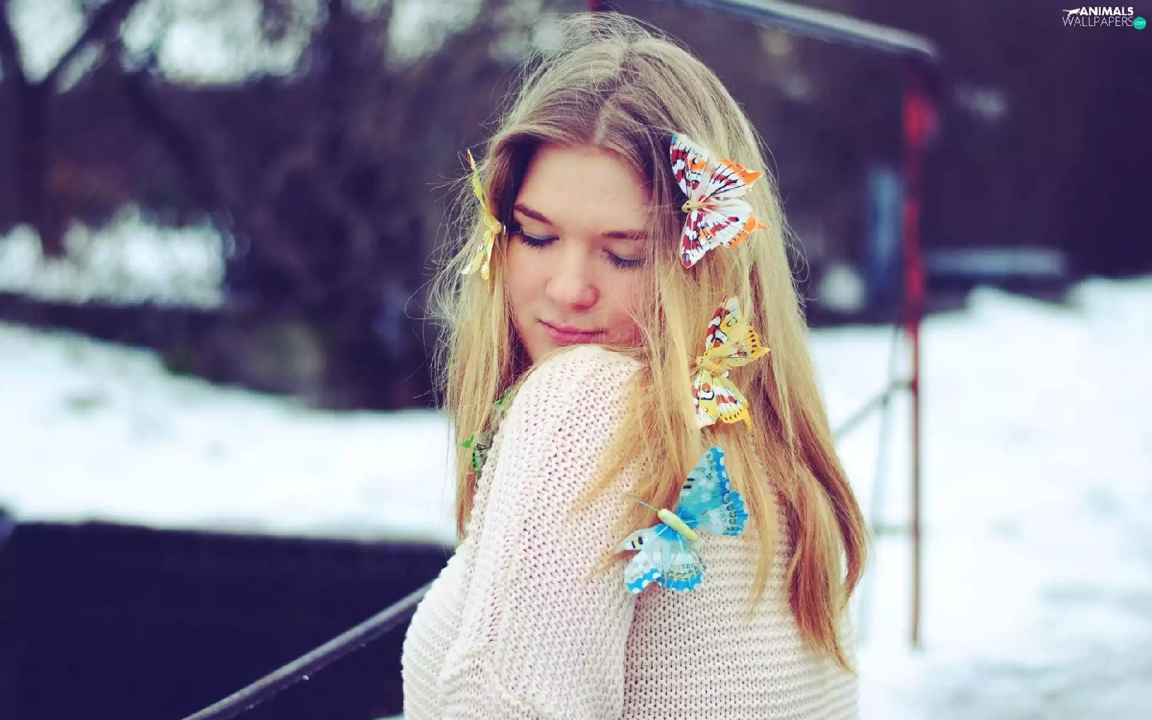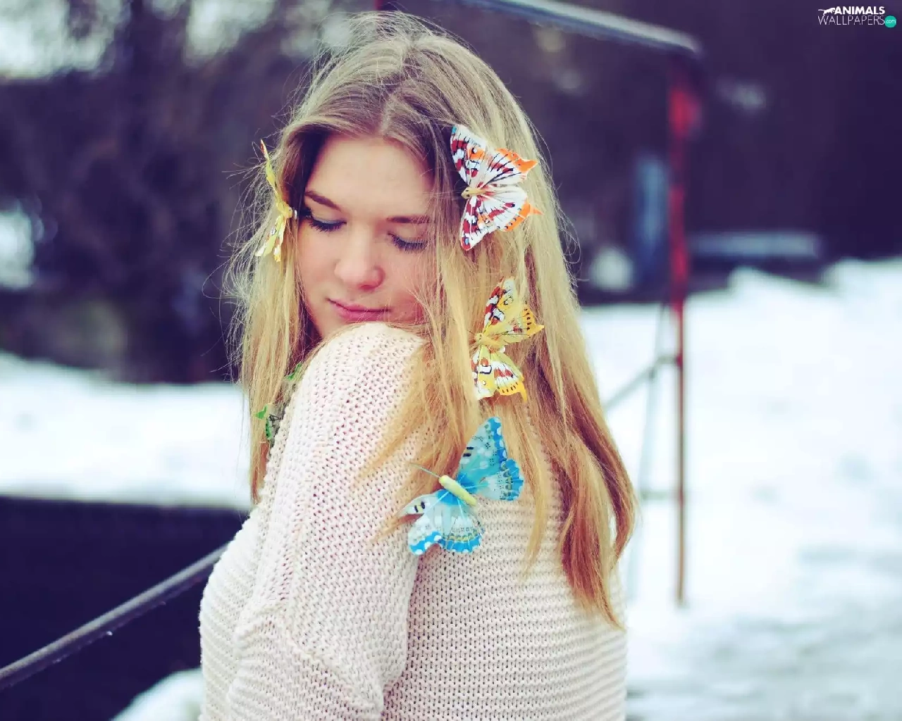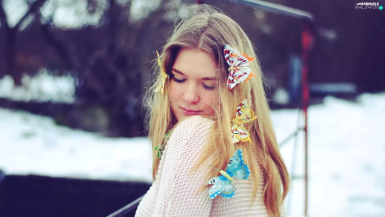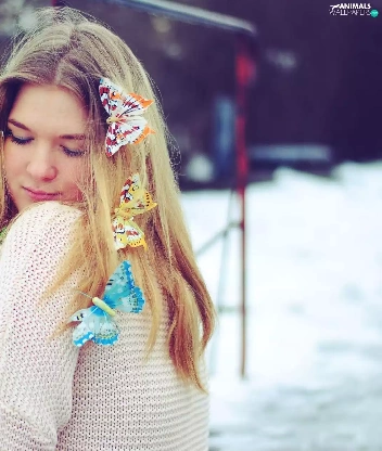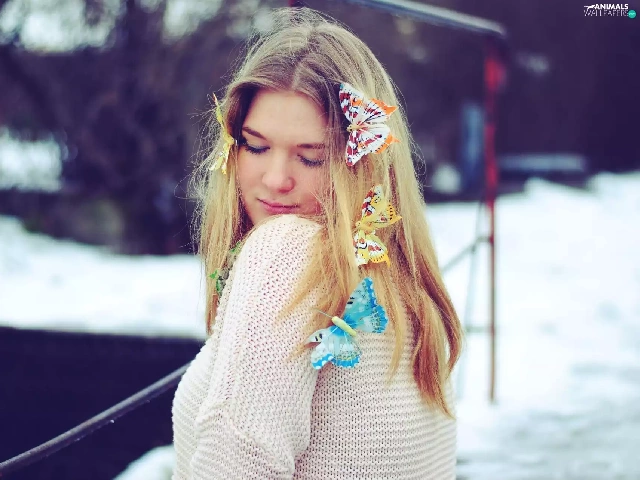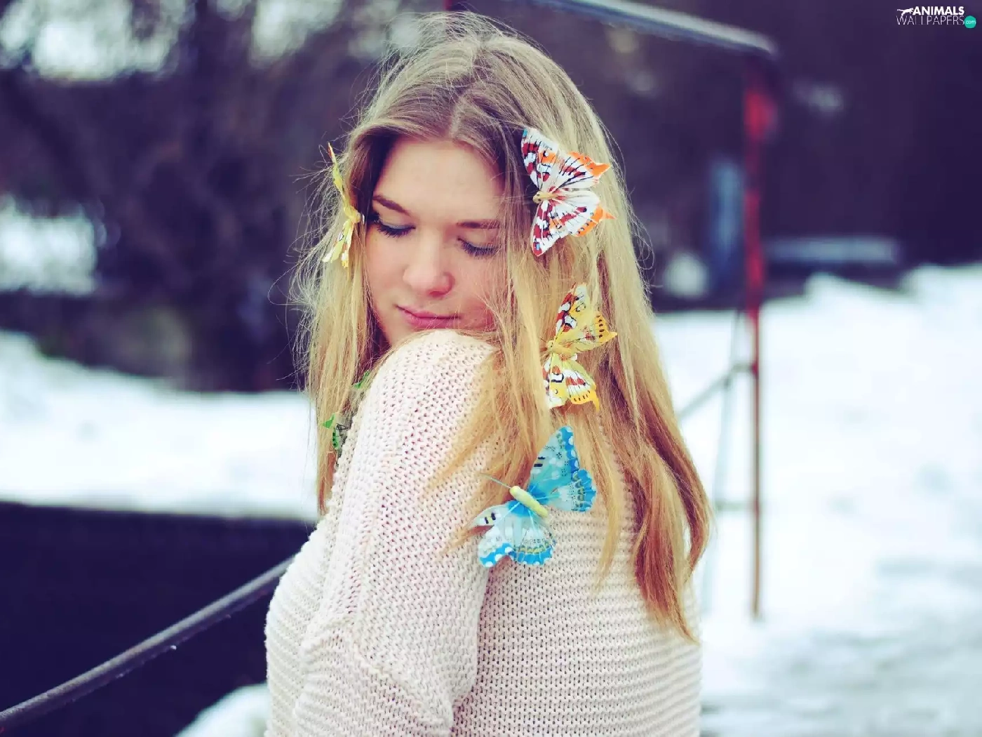 butterflies, Women, Blonde