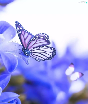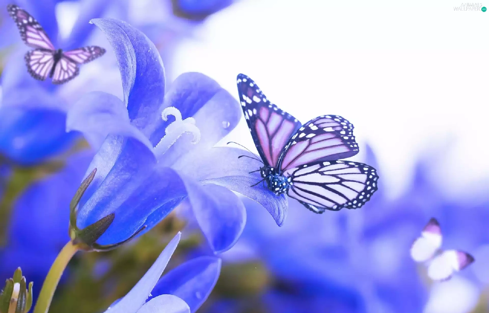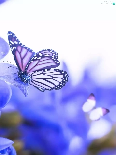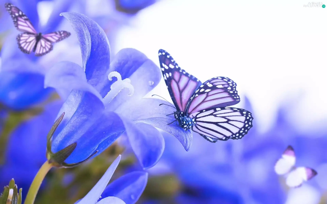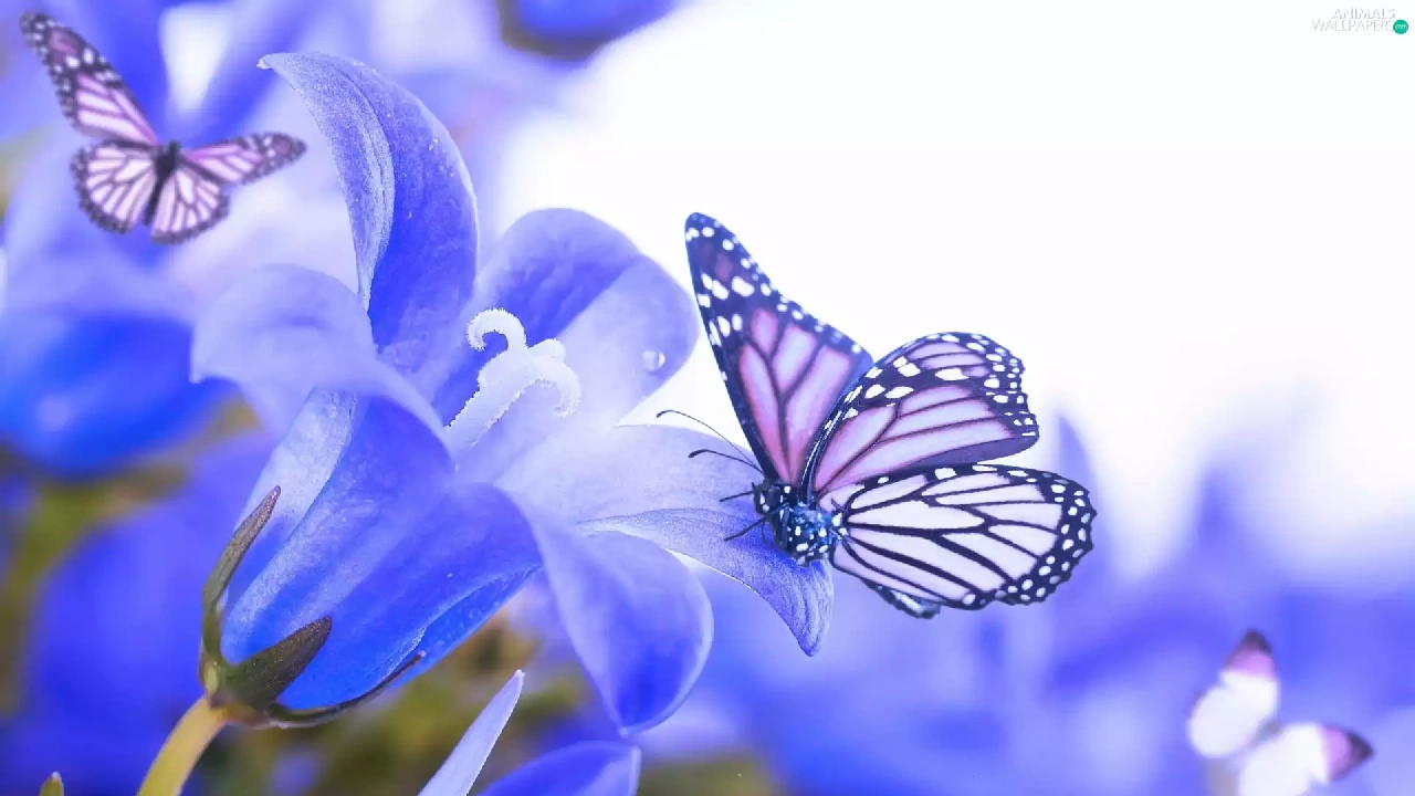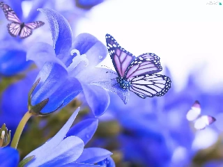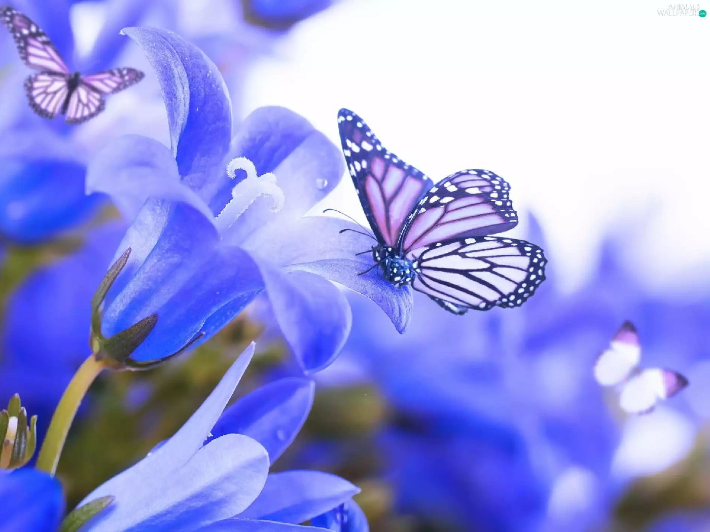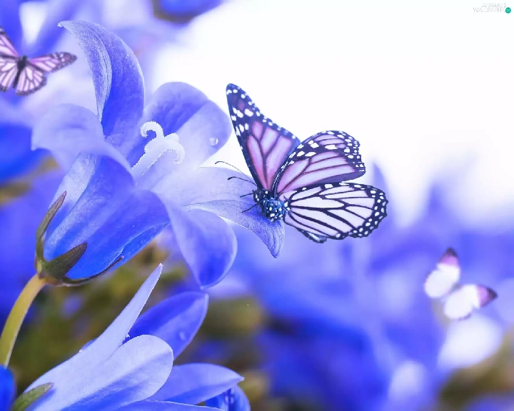 butterflies, Blue, Flowers