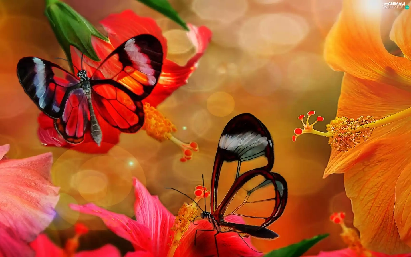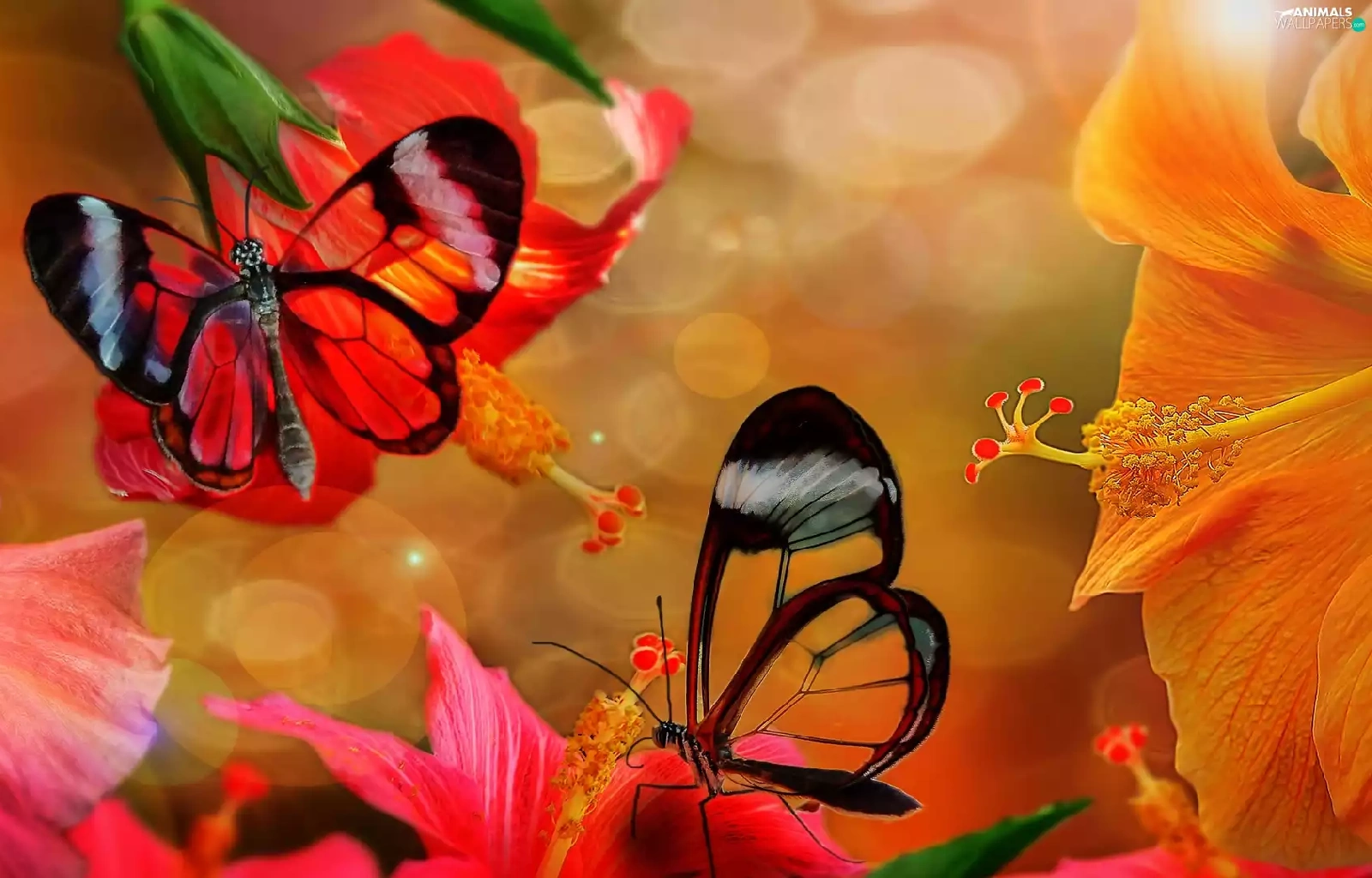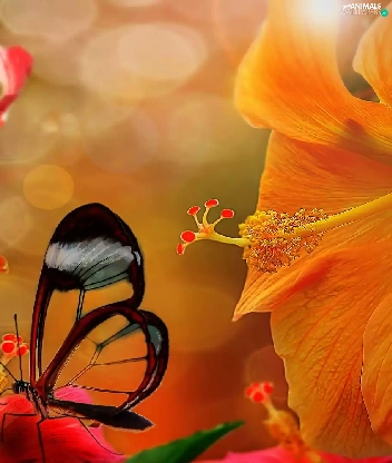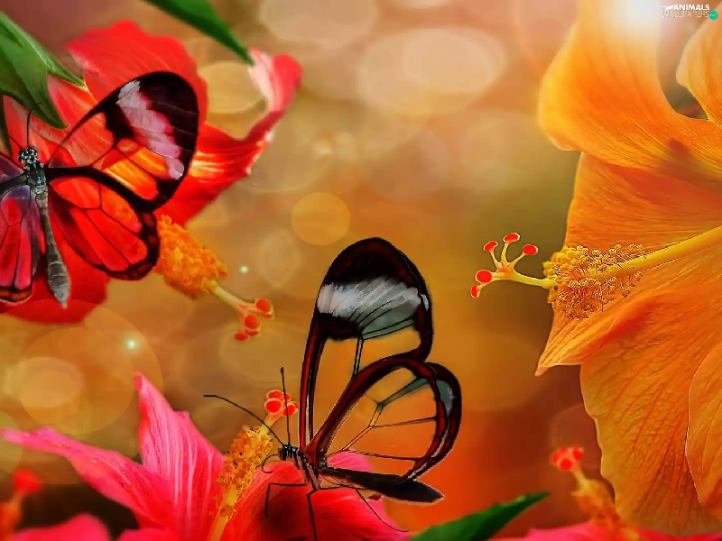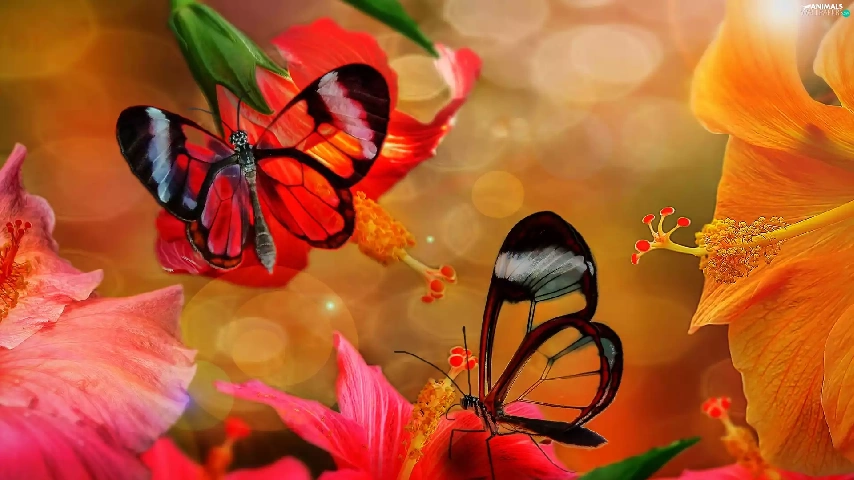 butterflies, hibiscus