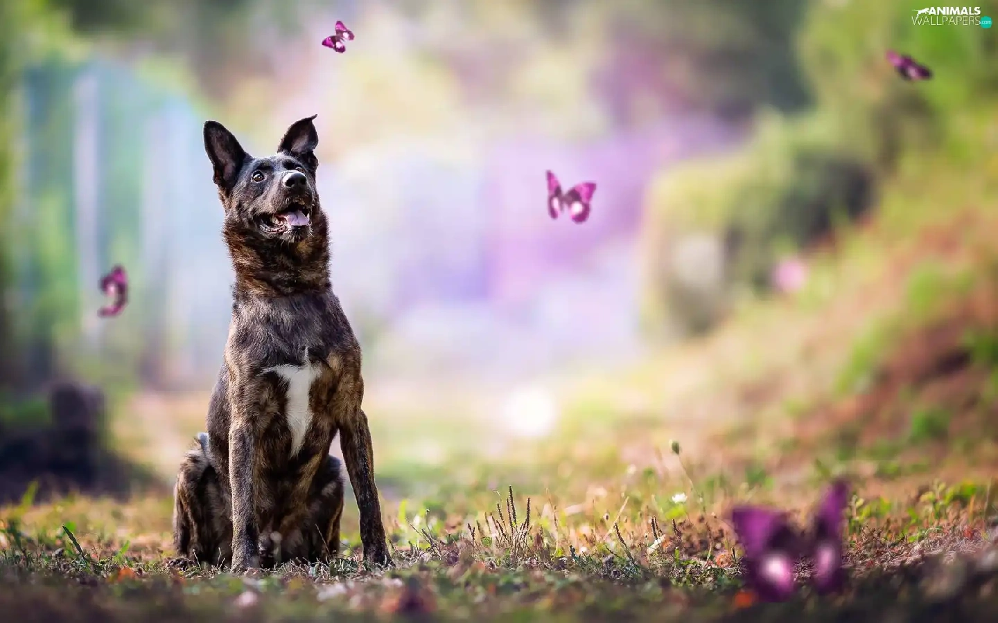 butterflies, dog, lea