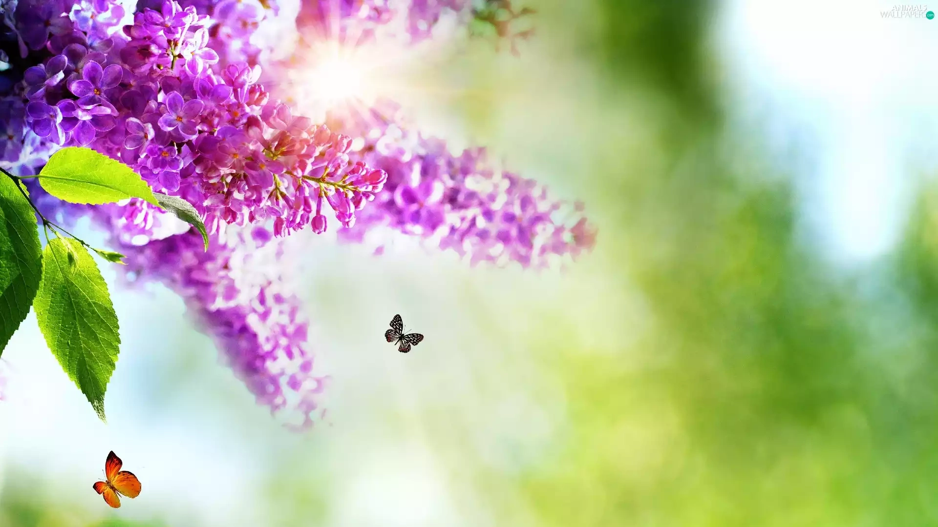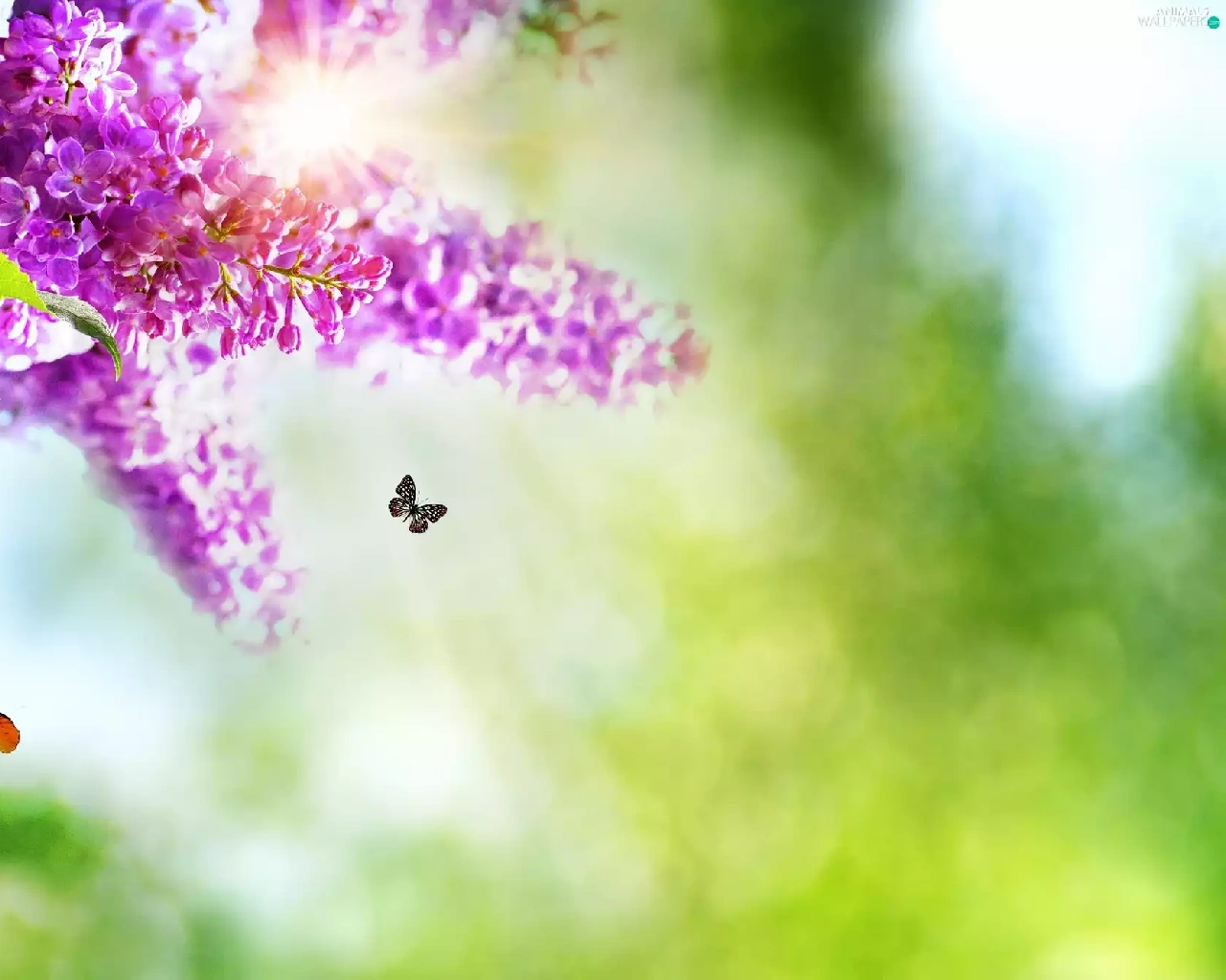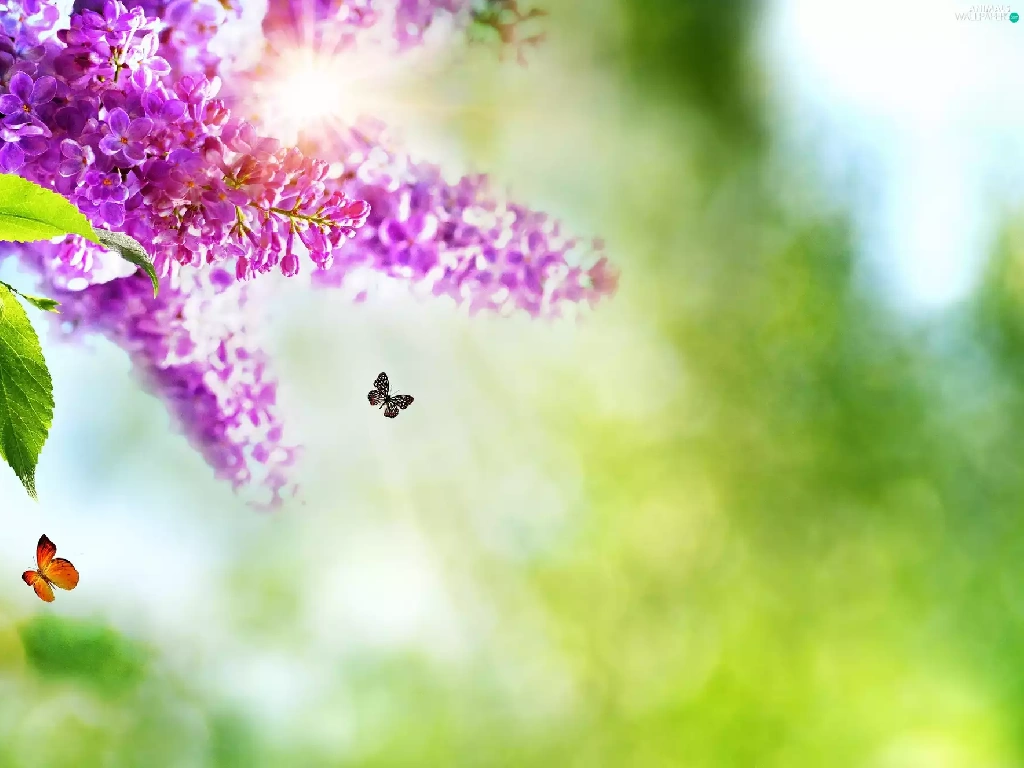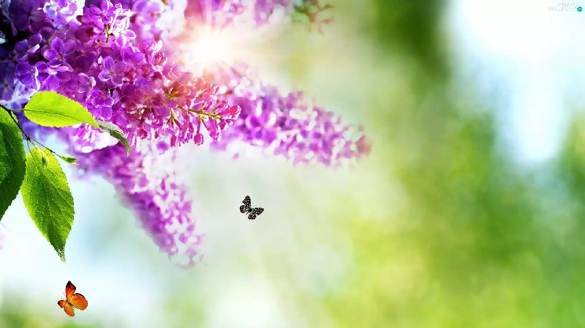 butterflies, Flowers, lilac
