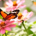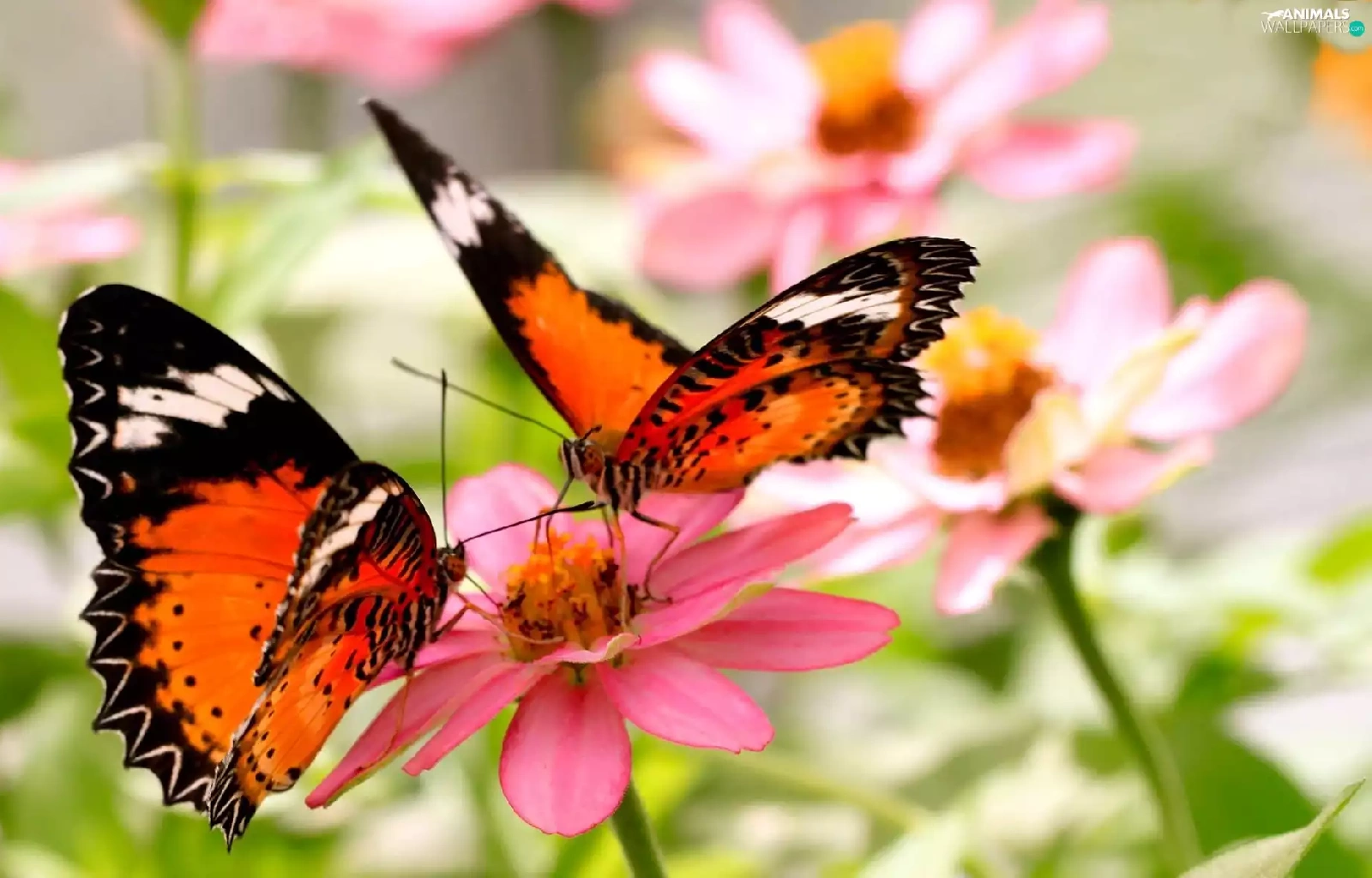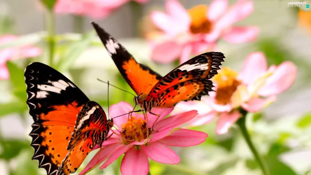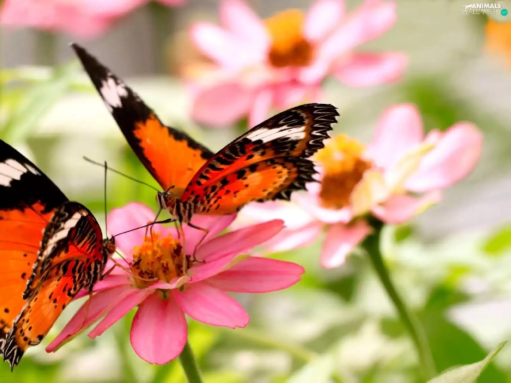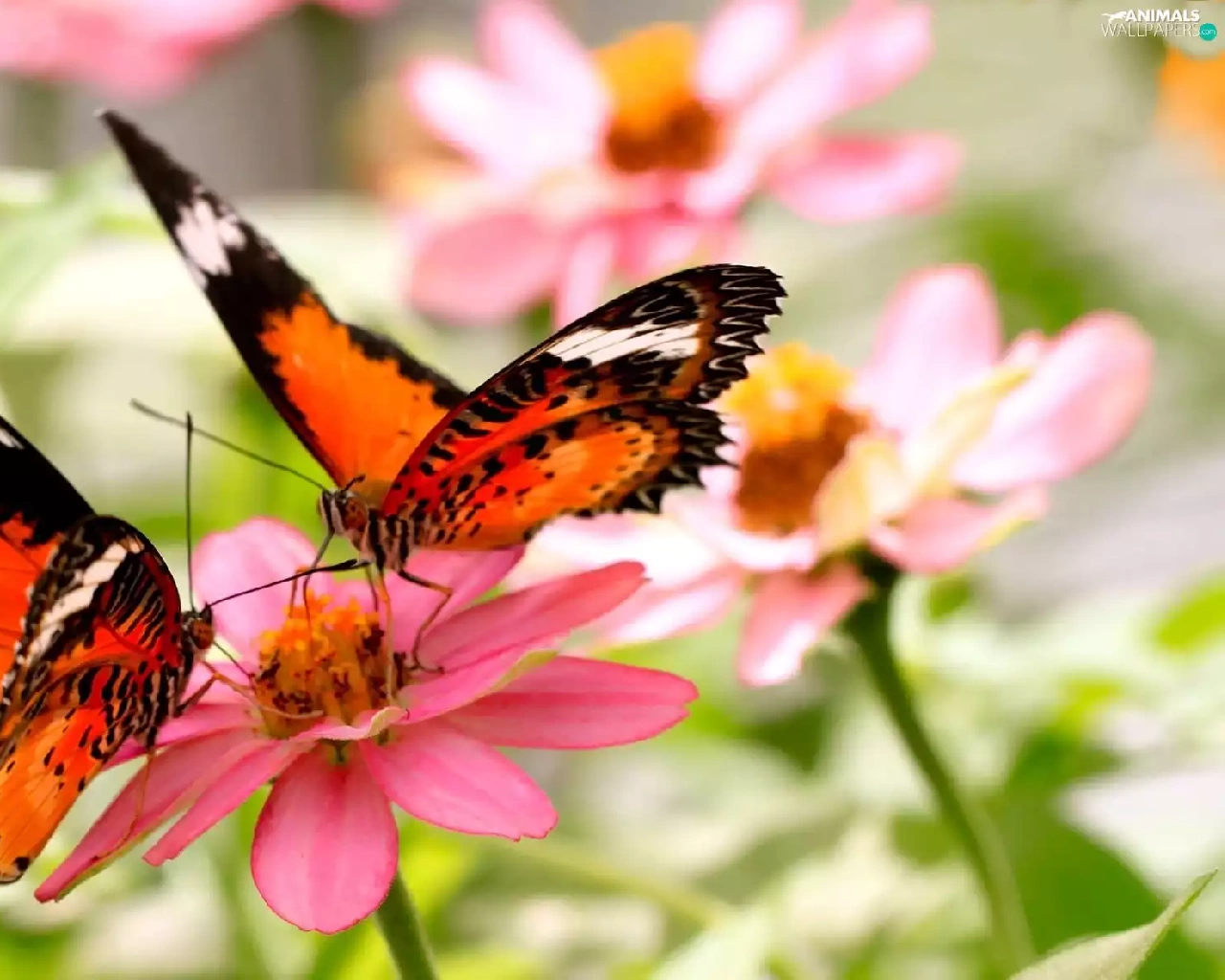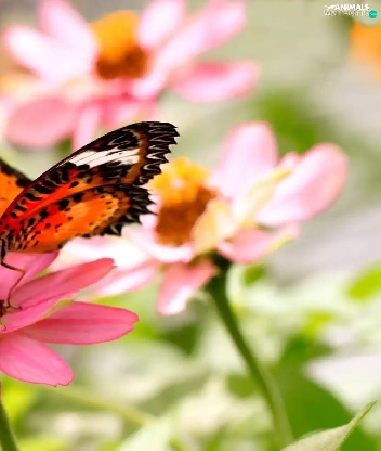 Orange, Pink, Flowers, butterflies