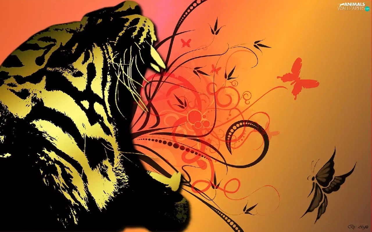 butterflies, tiger, roar