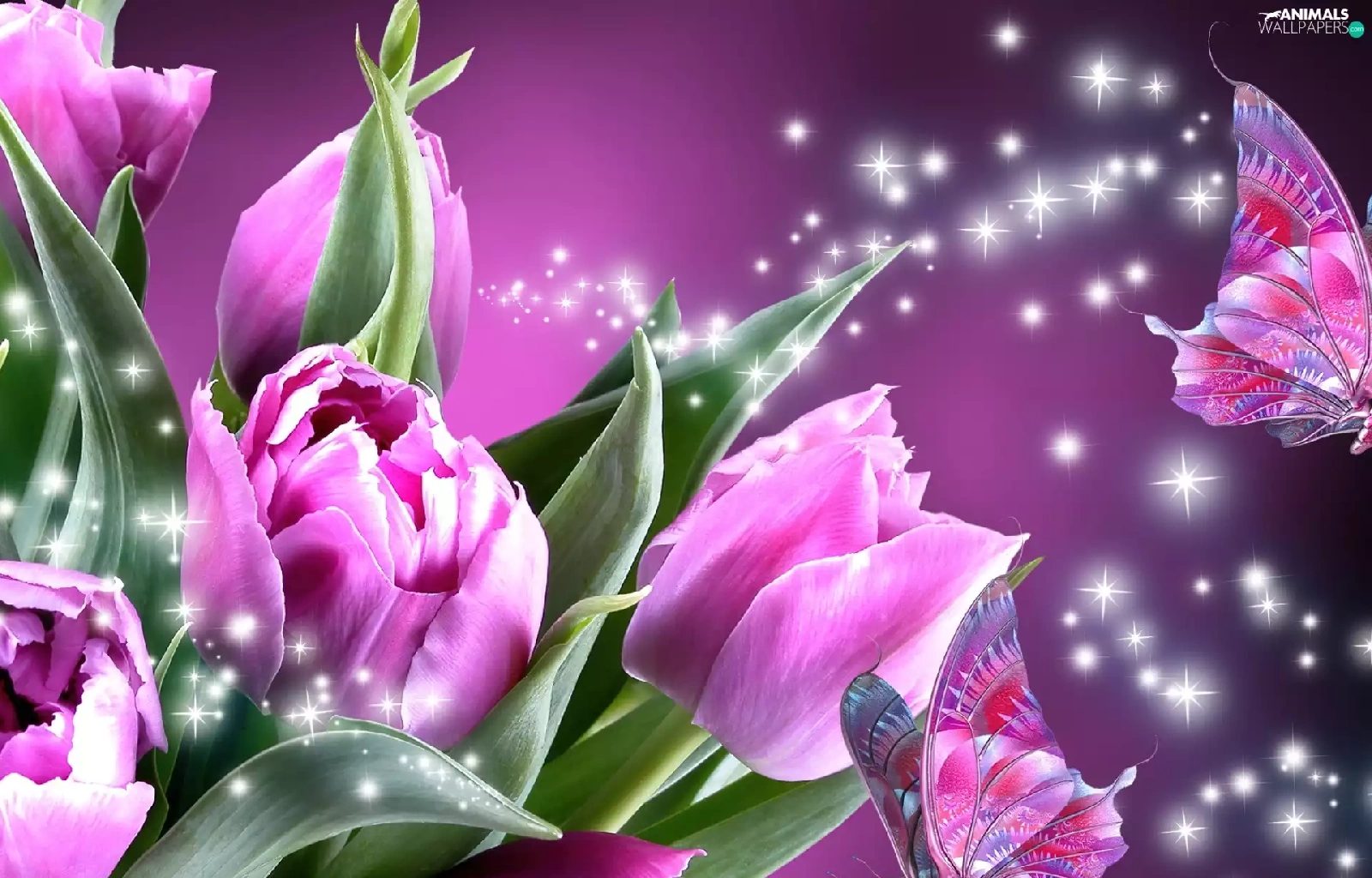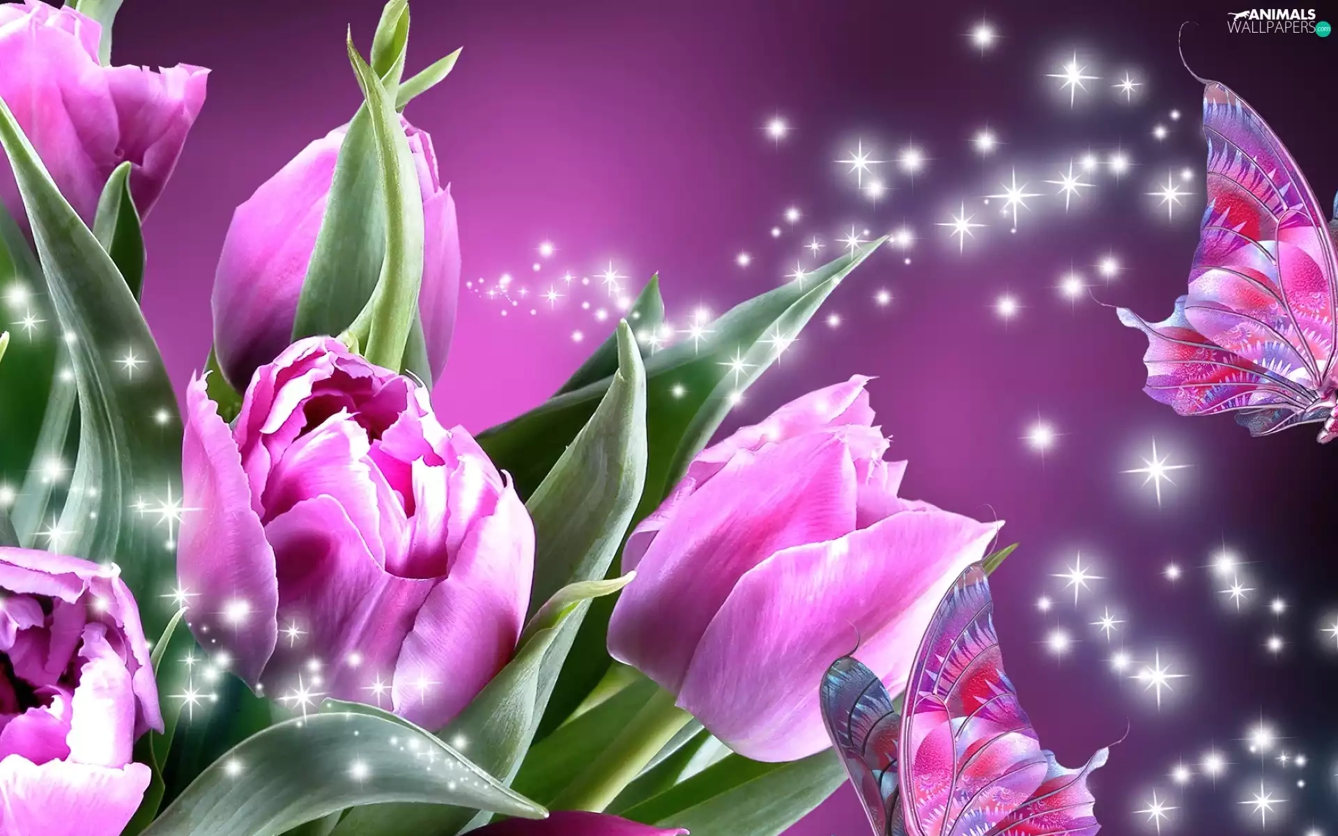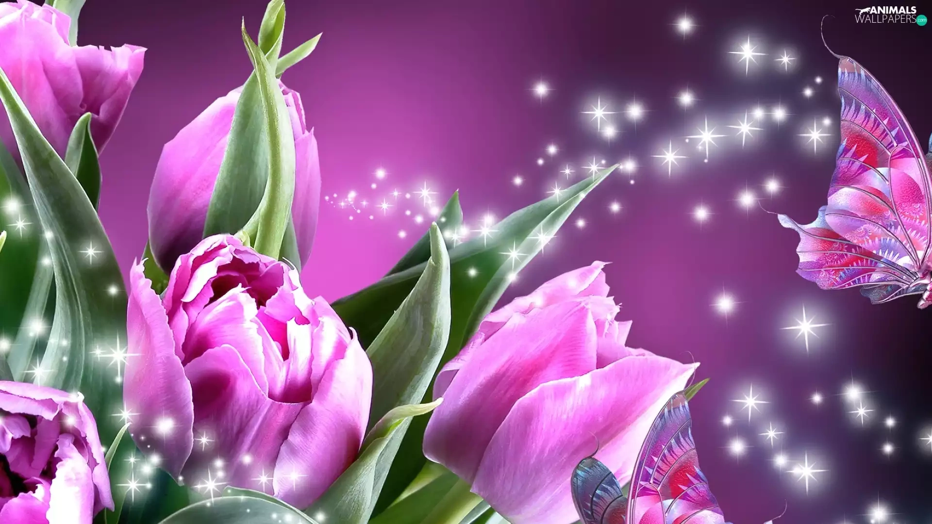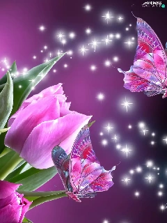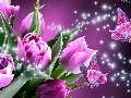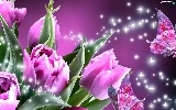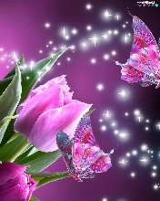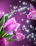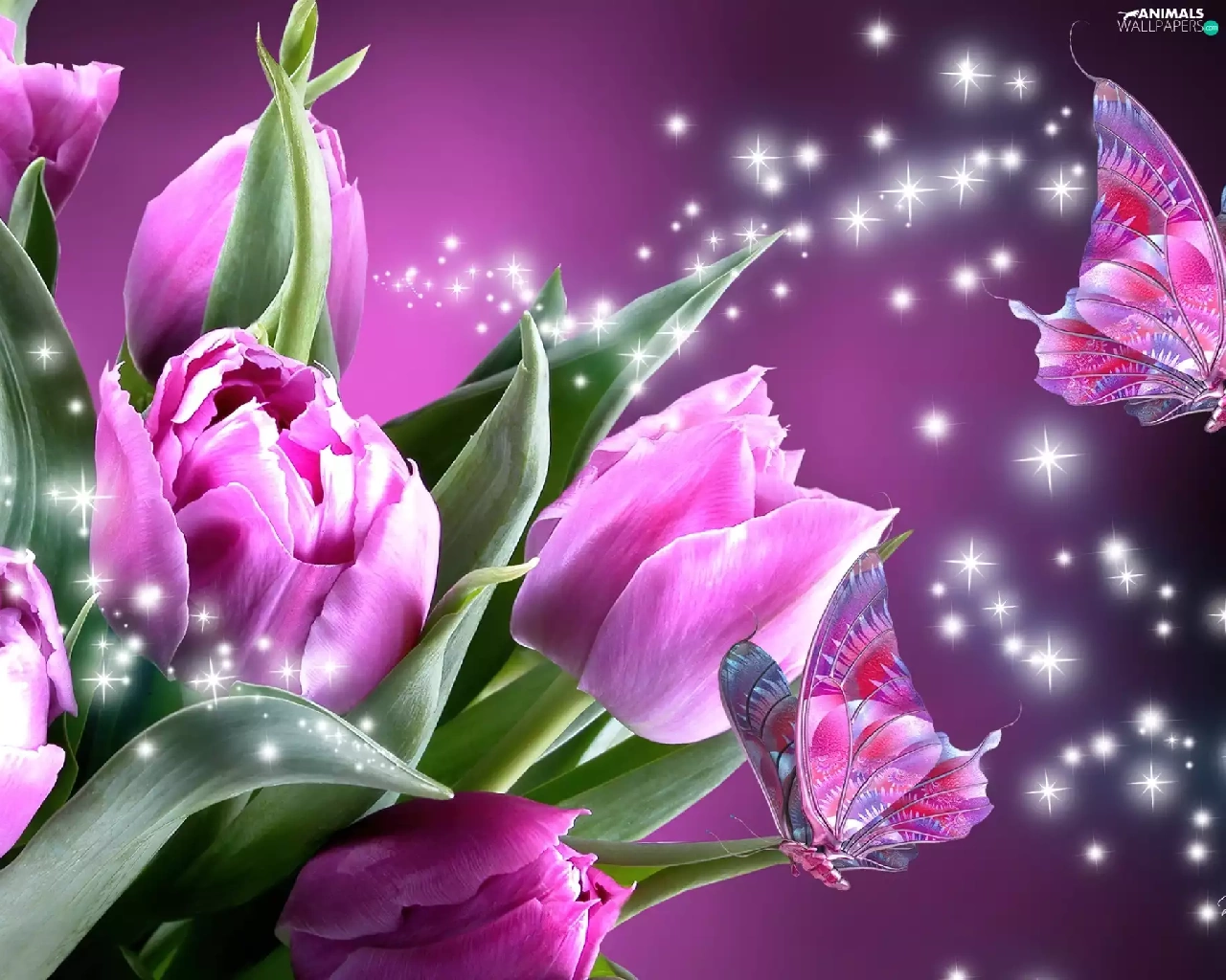 butterflies, Pink, Tulips