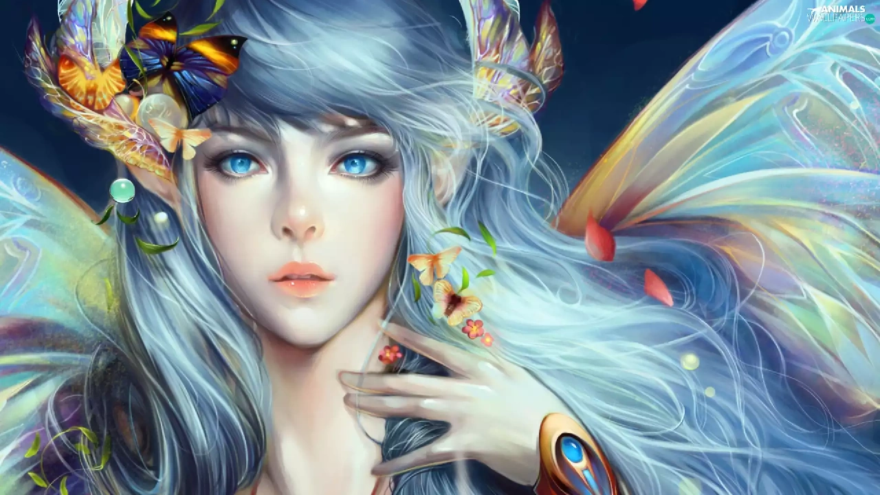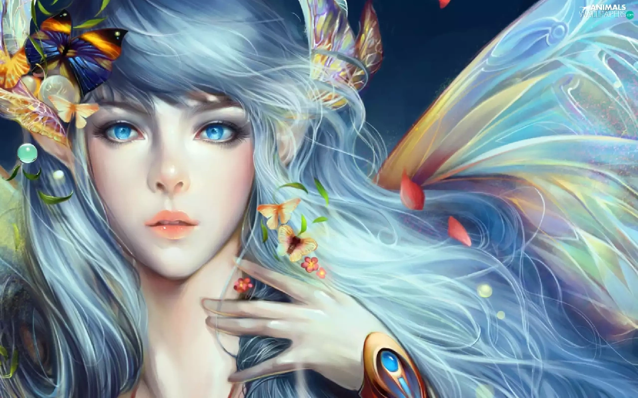 butterflies, blue-, Women