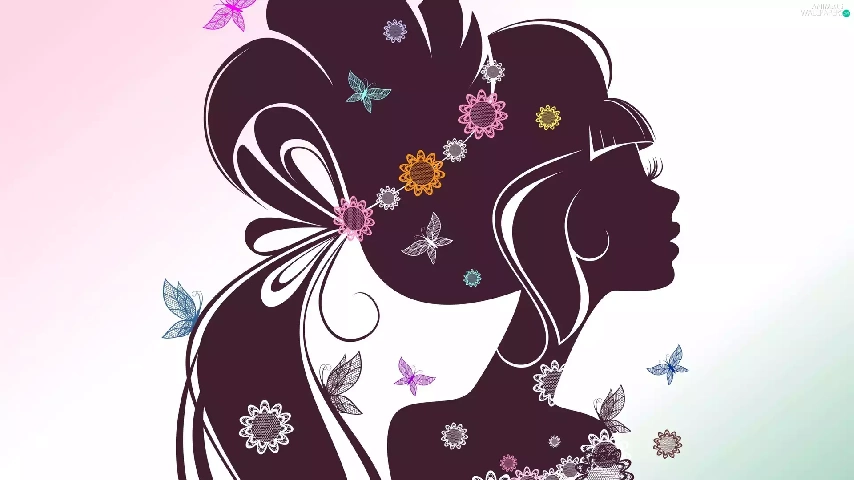 Women, Flowers, graphics, butterflies