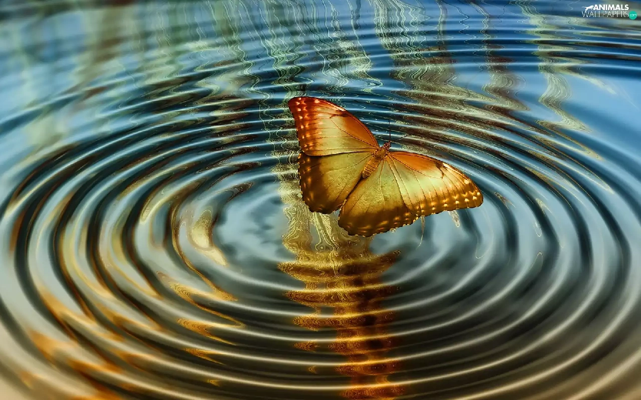 water, butterfly, 2D Graphics, circles
