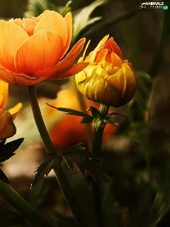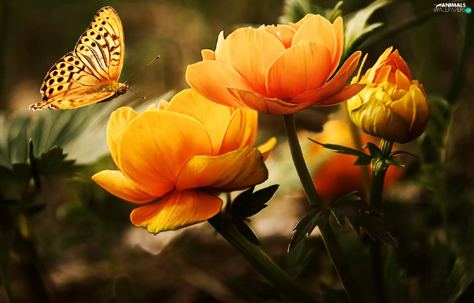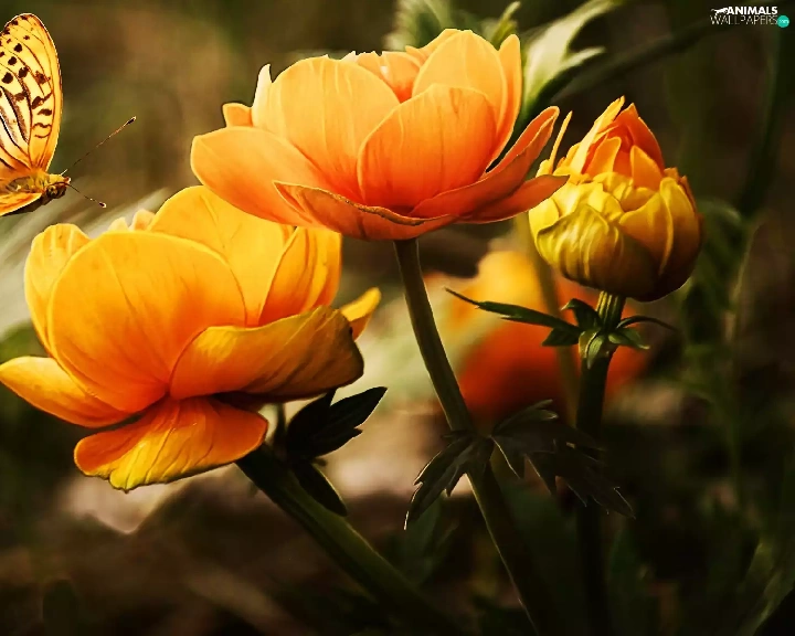 Orange, butterfly, Art, Colourfull Flowers
