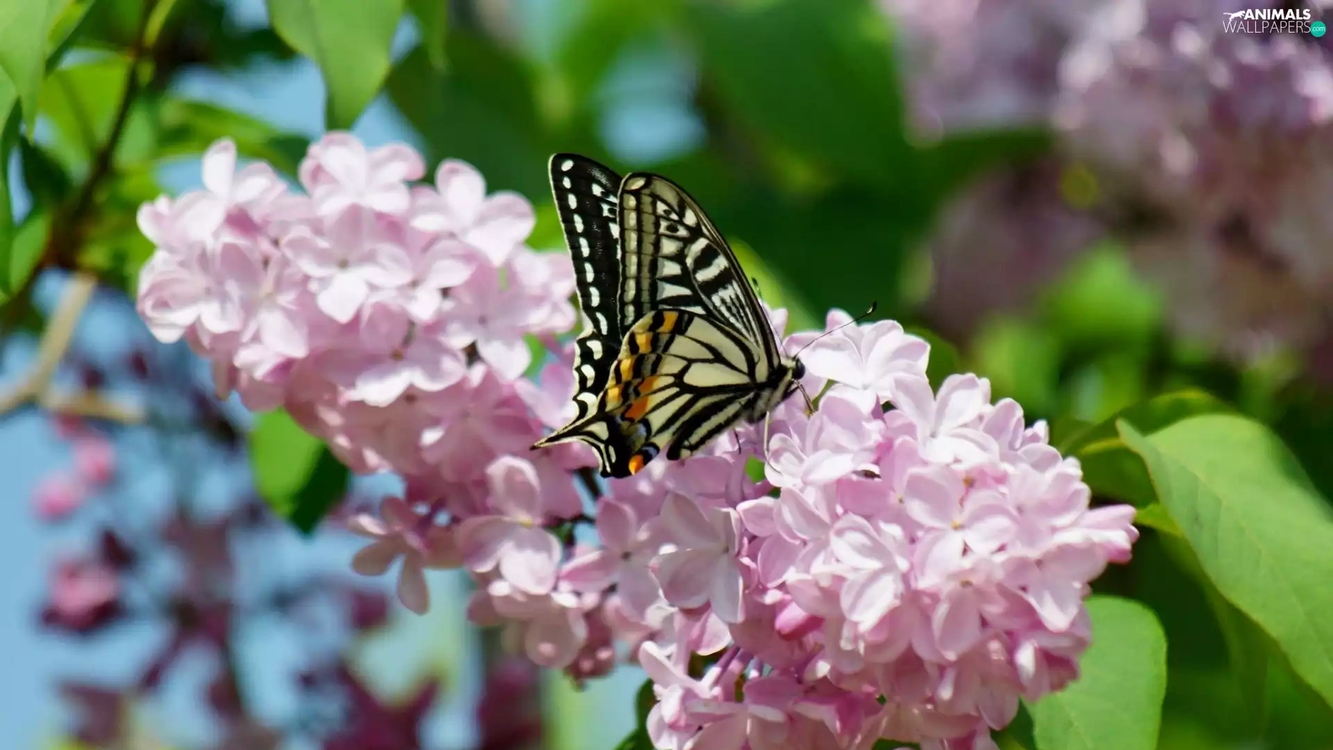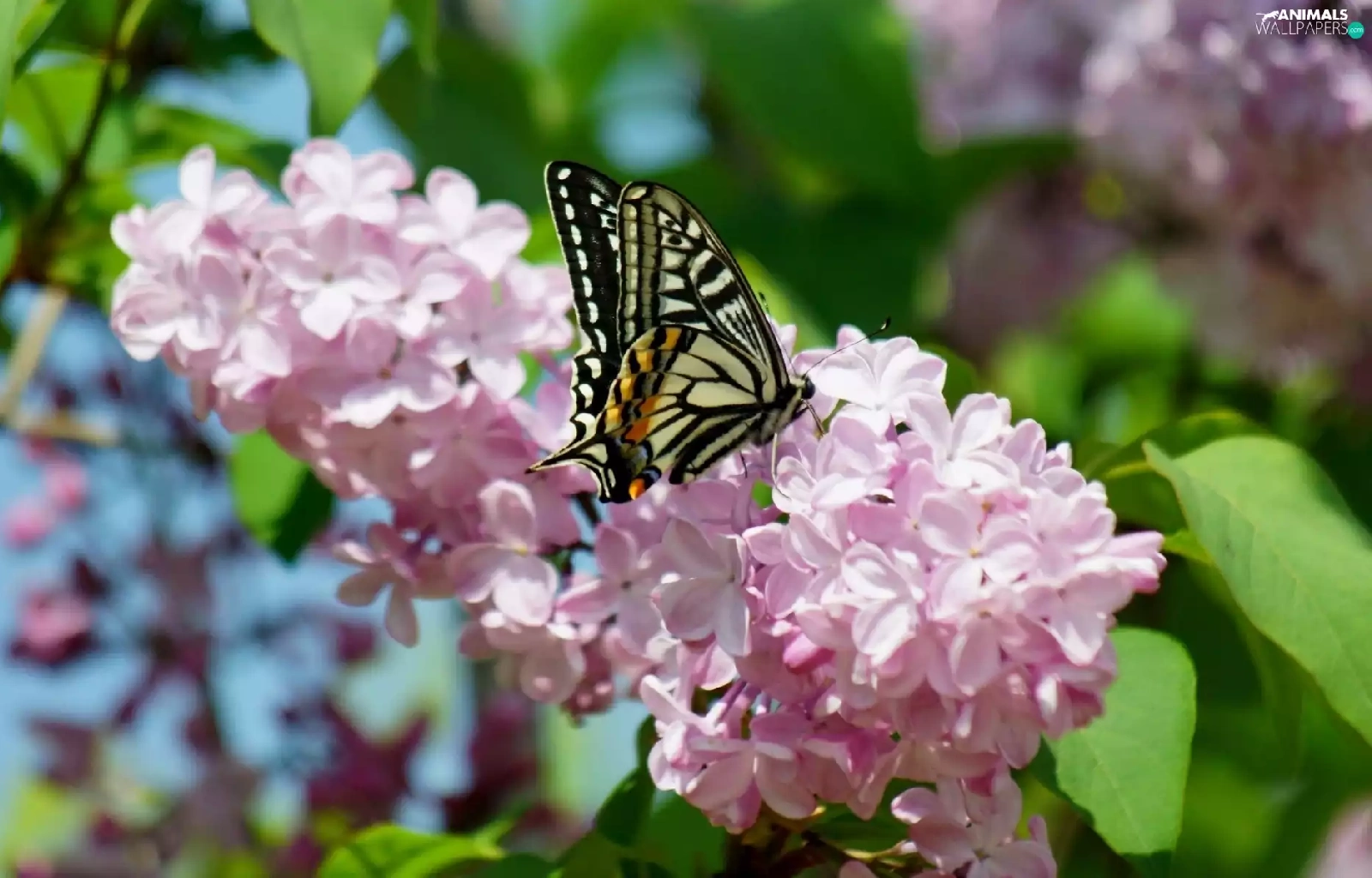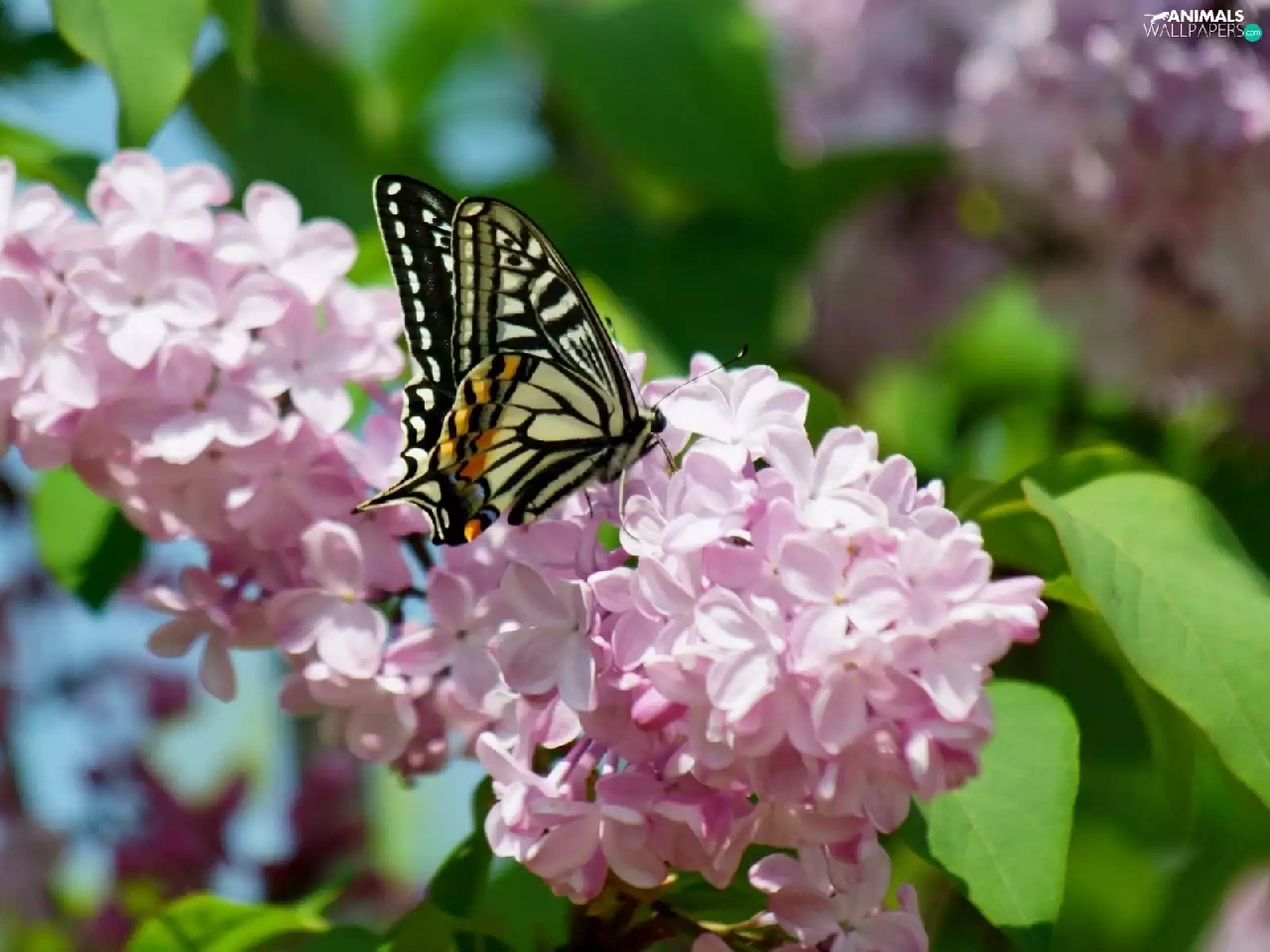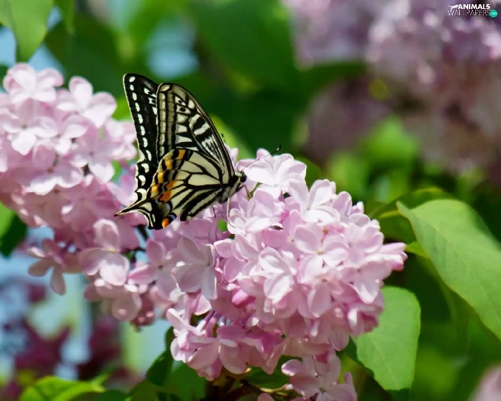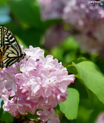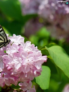 Beatyfull, butterfly, branch, lilac, Blossoming