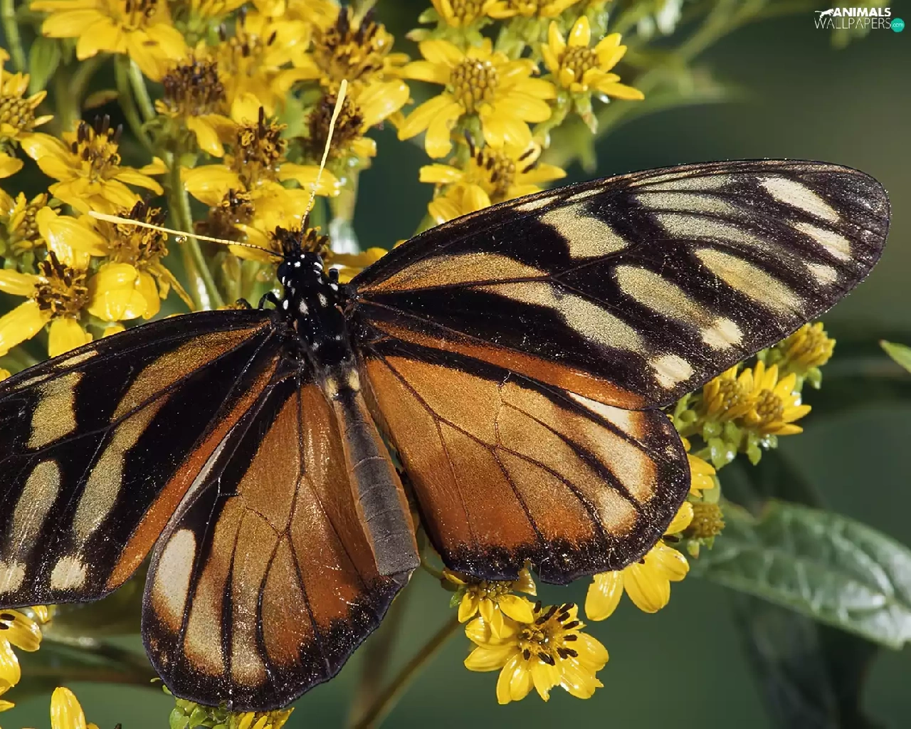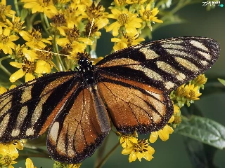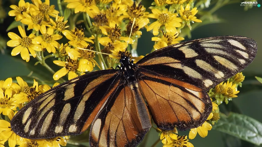 Brown, Yellow, Flowers, butterfly