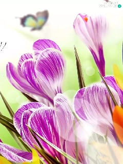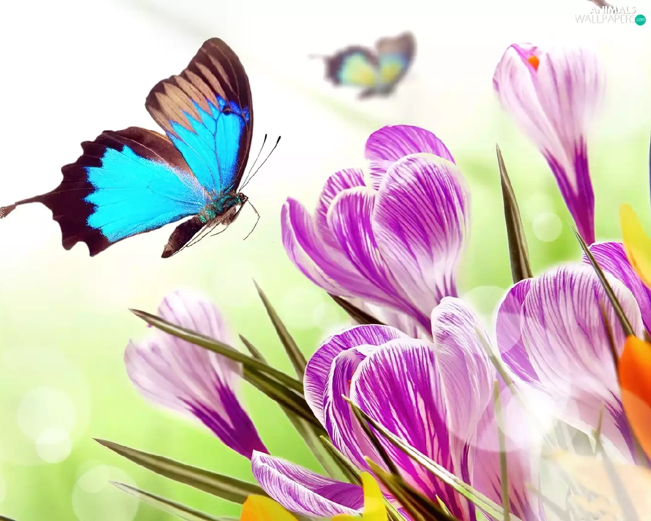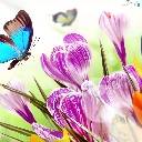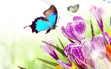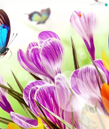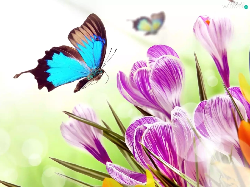 butterfly, Flowers, crocuses