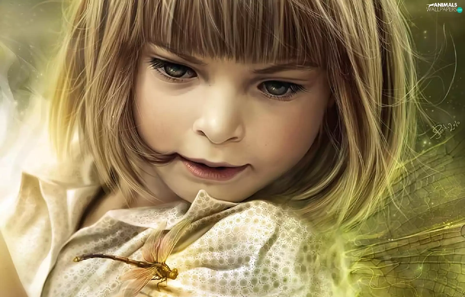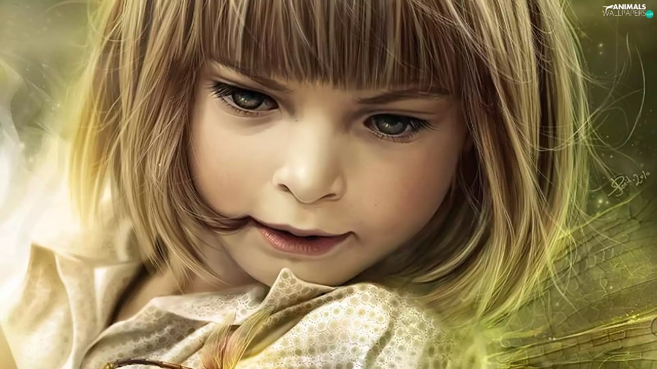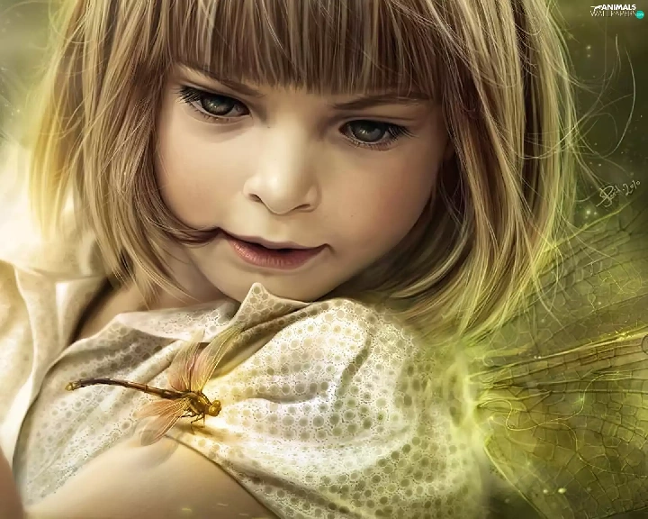 dragon-fly, girl, butterfly
