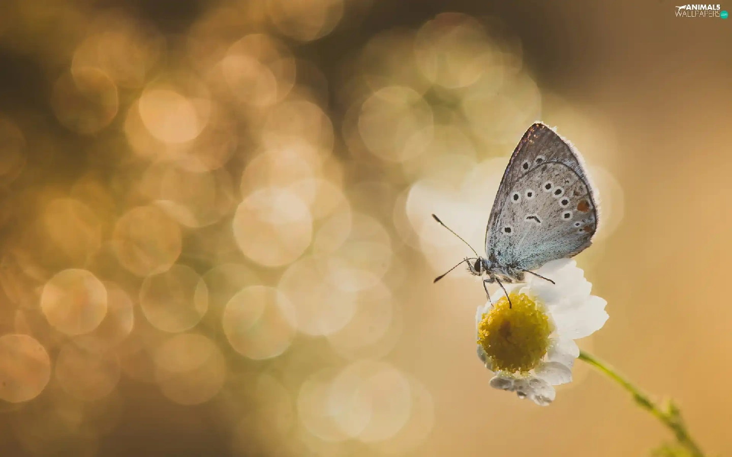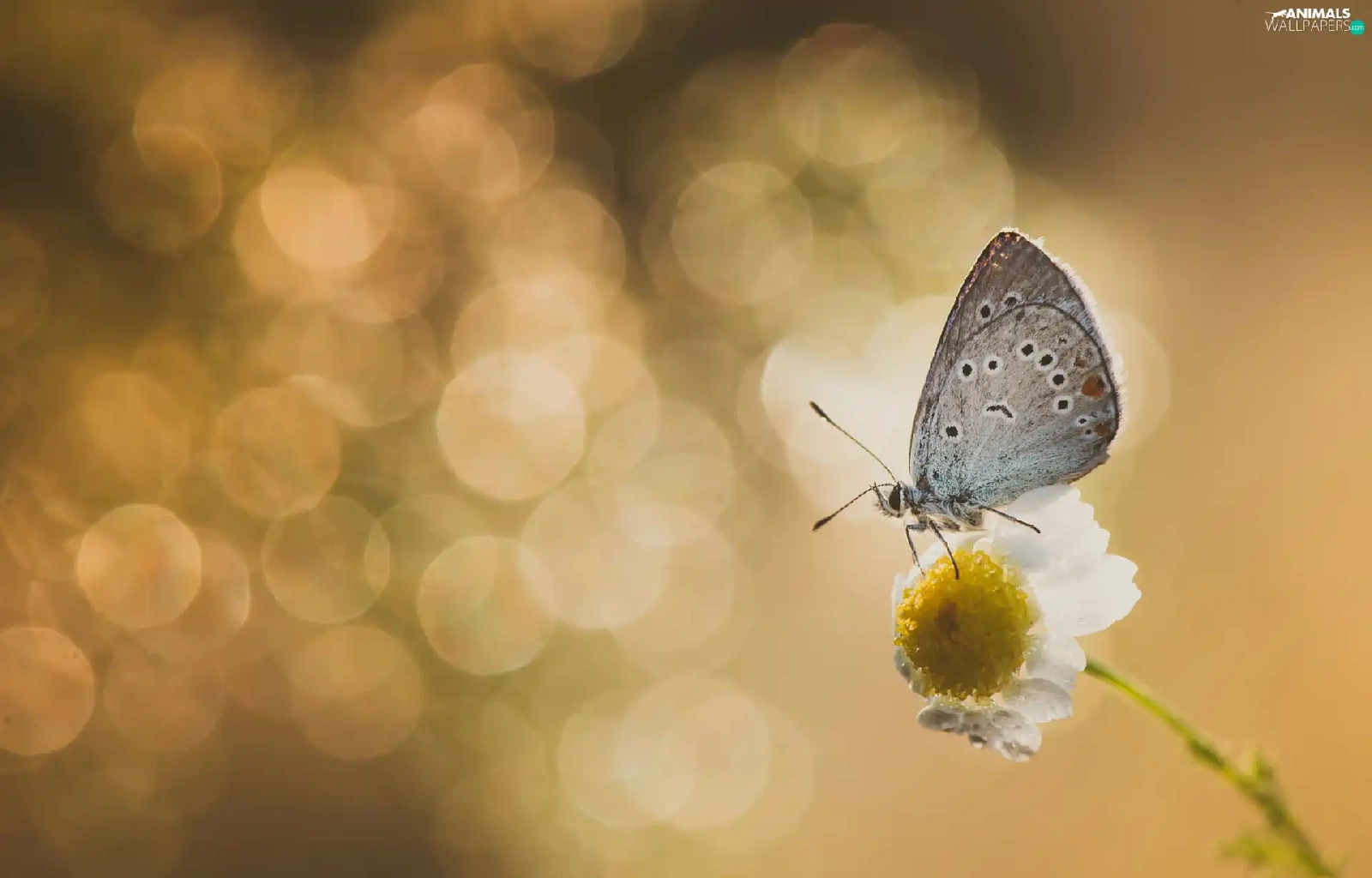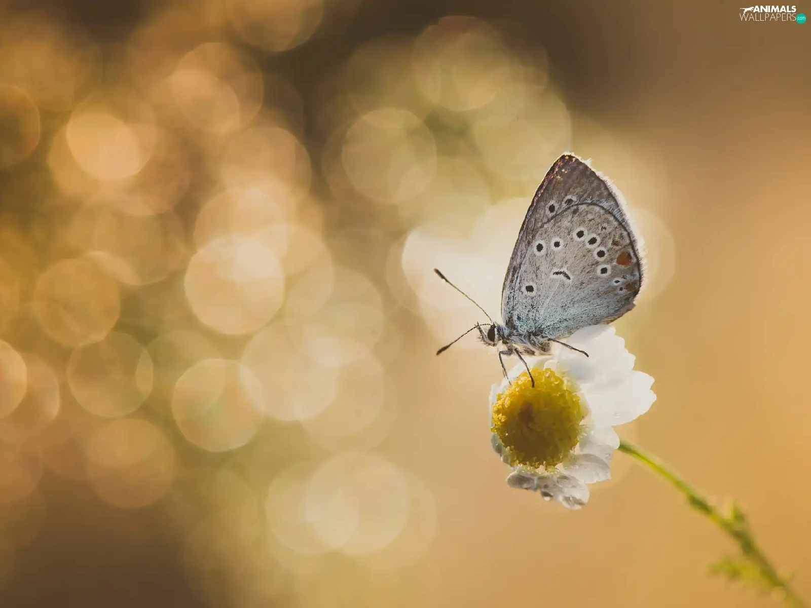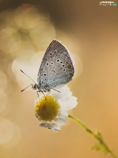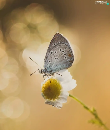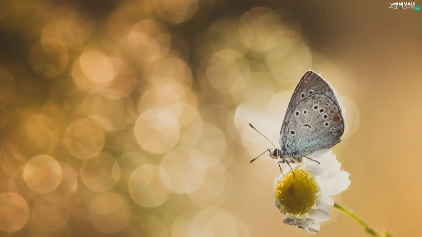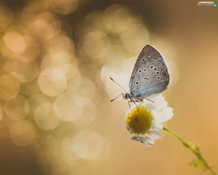 Flower, butterfly, Dusky Icarus, chamomile