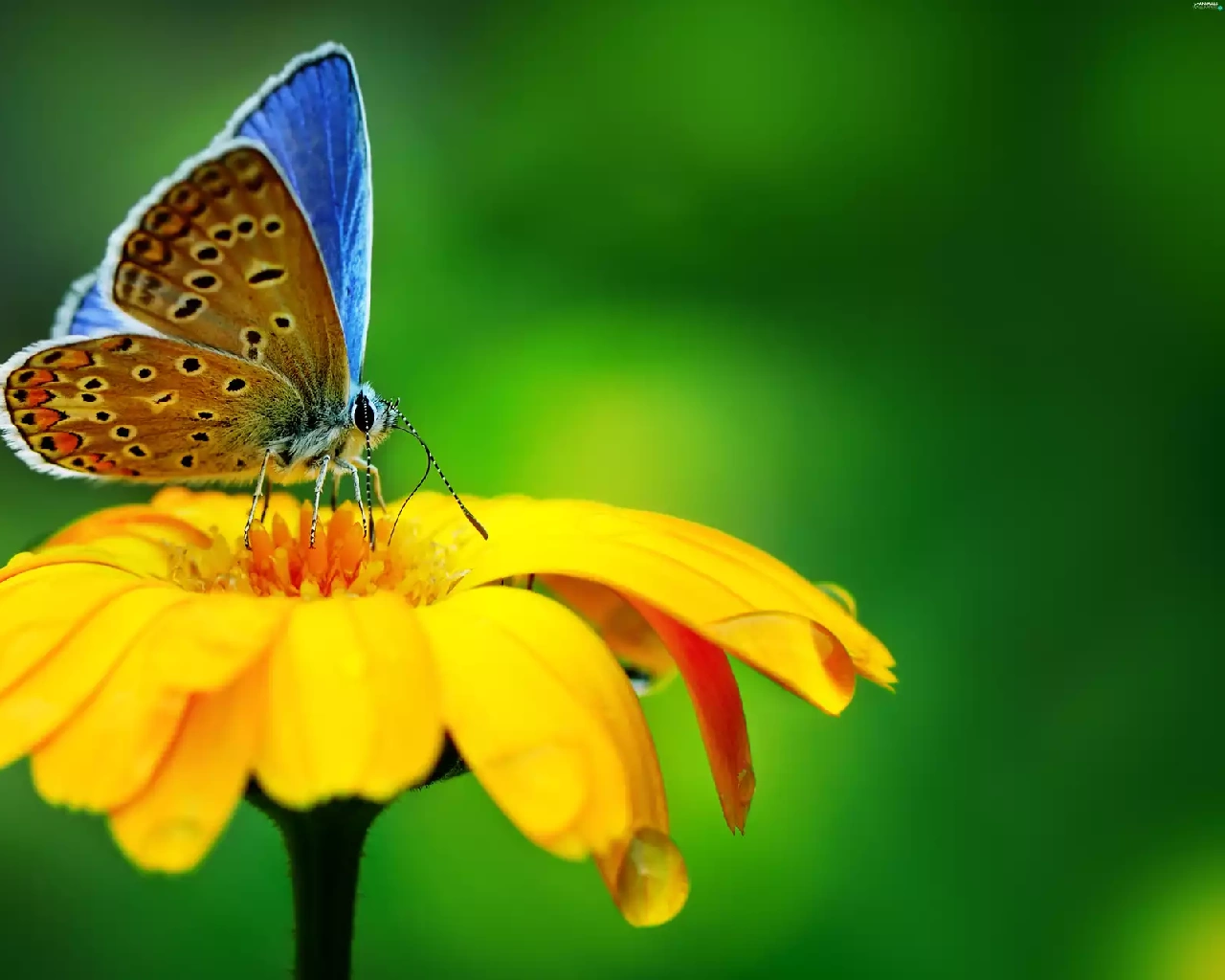 Yellow, butterfly, Dusky, Colourfull Flowers