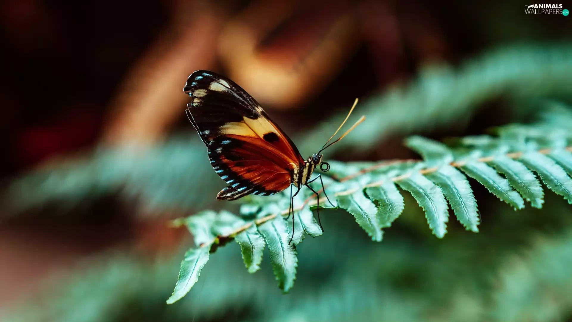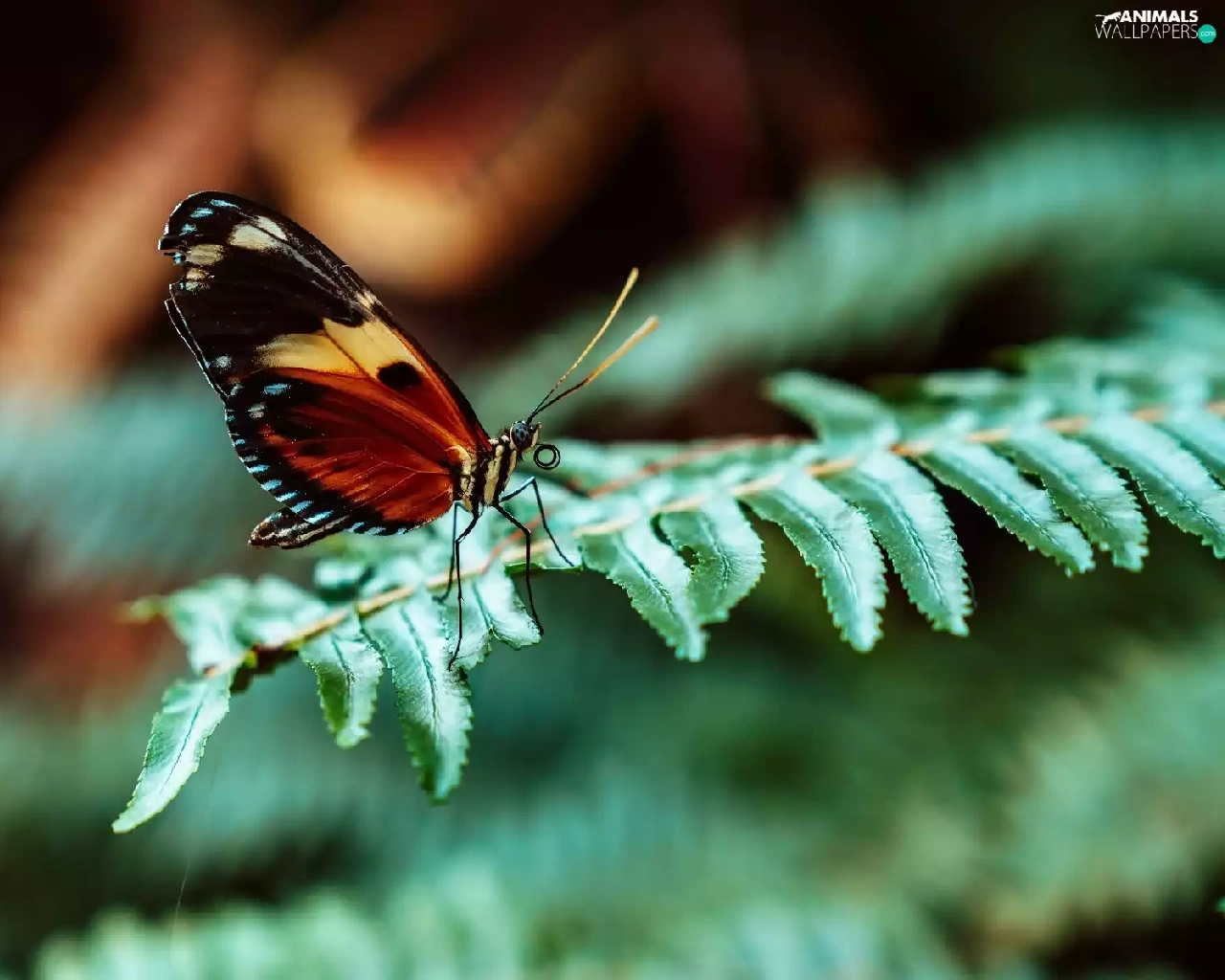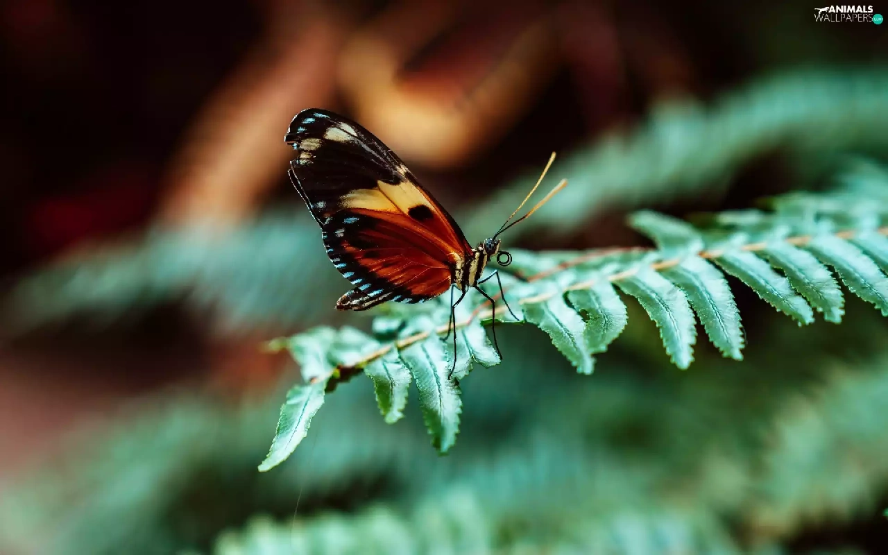 butterfly, leaf, Fern