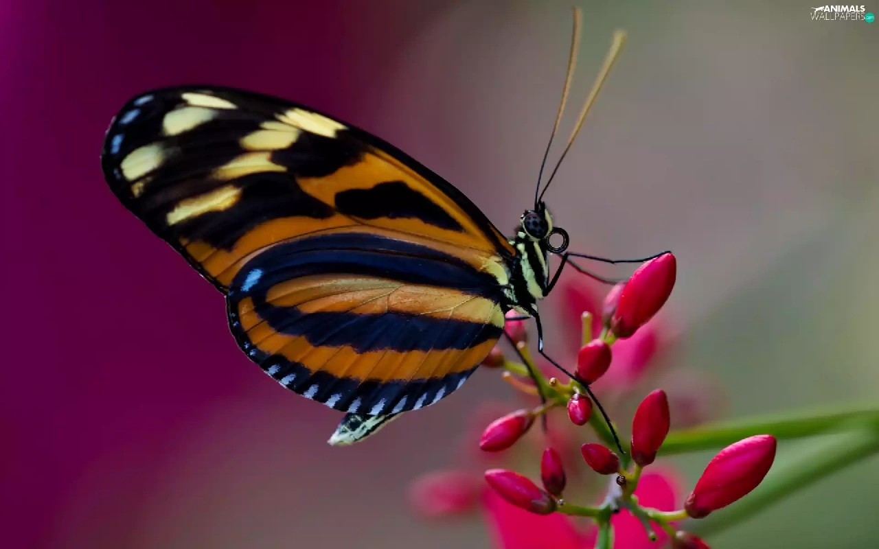 butterfly, Colourfull Flowers