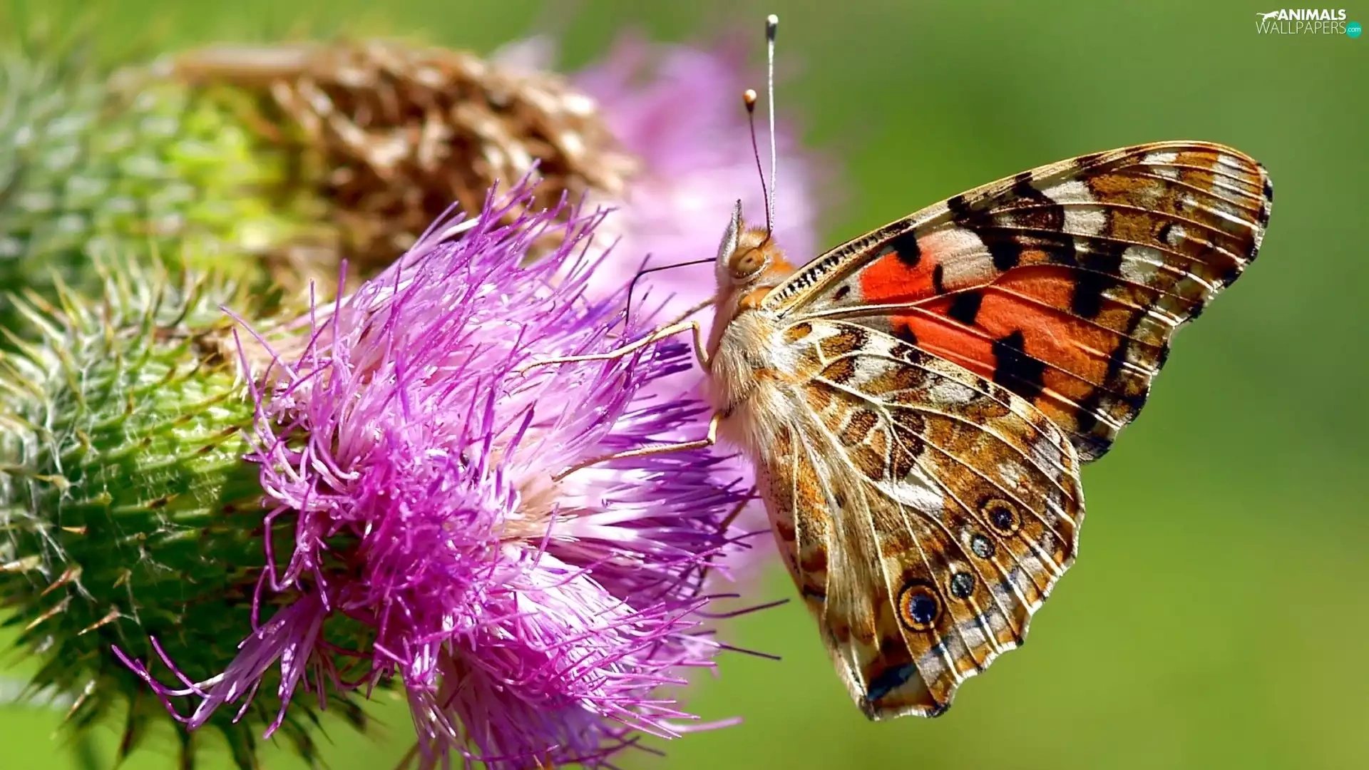 undine, Cardui, thistle, butterfly, Colourfull Flowers