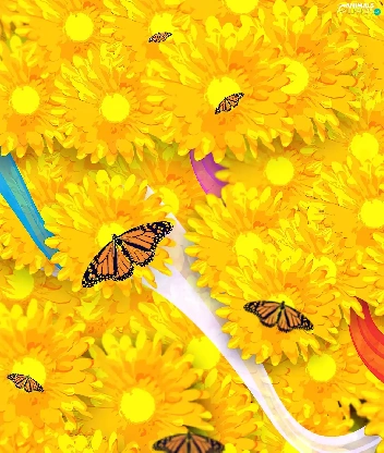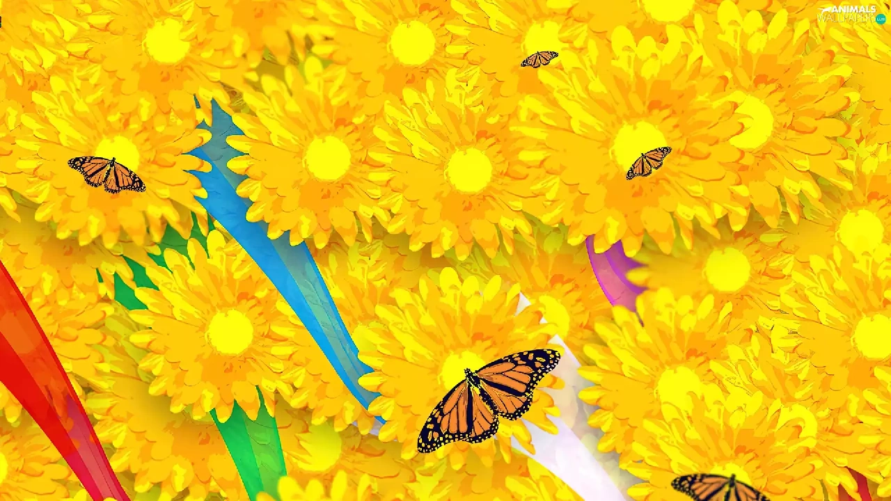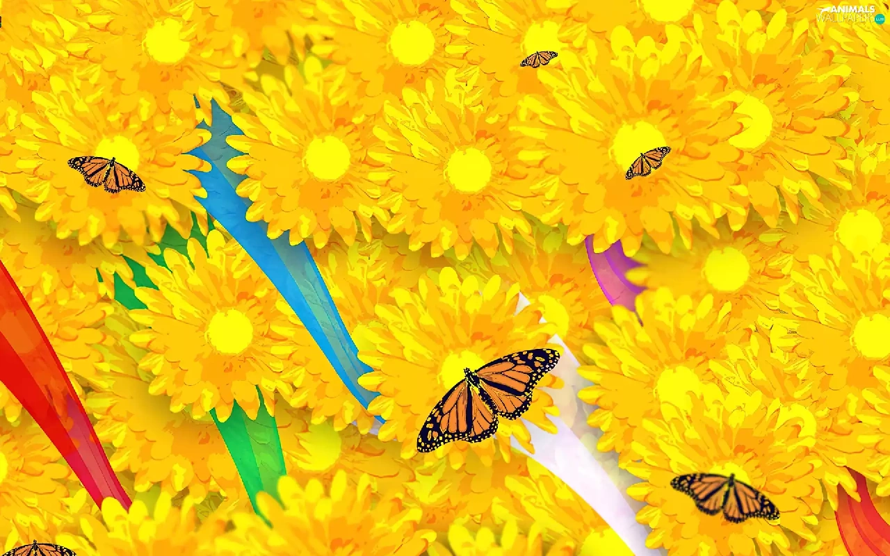 butterfly, Yellow, Flowers