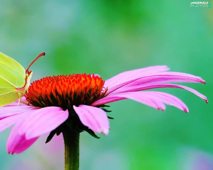 Gerbera, butterfly, Brimstone Butterfly