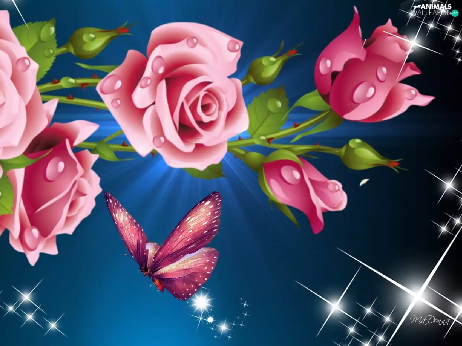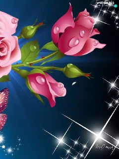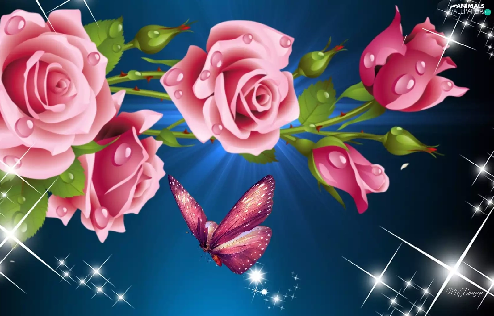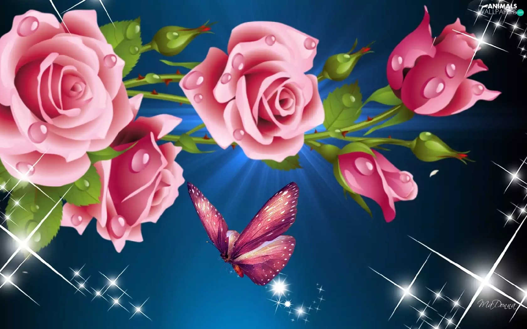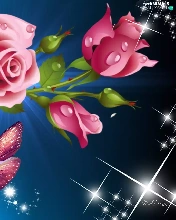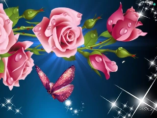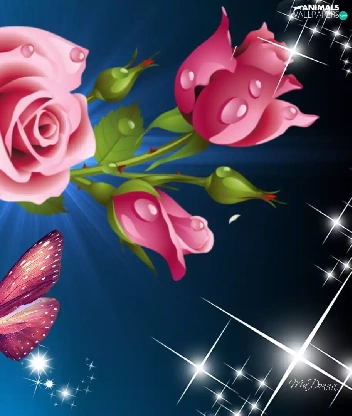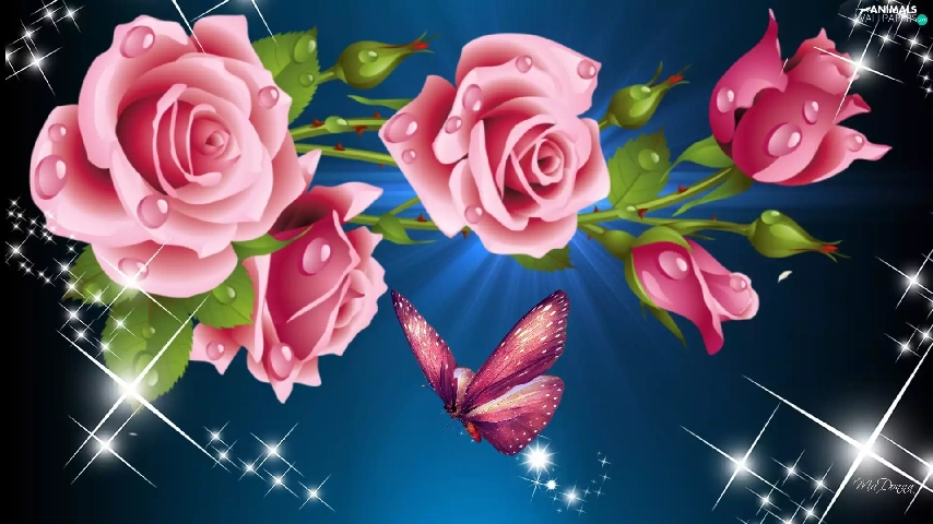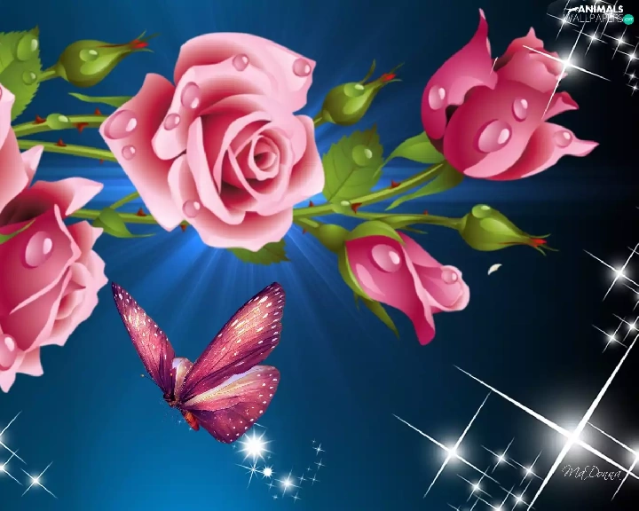 reflections, roses, graphics, butterfly, Pink, light, Computer