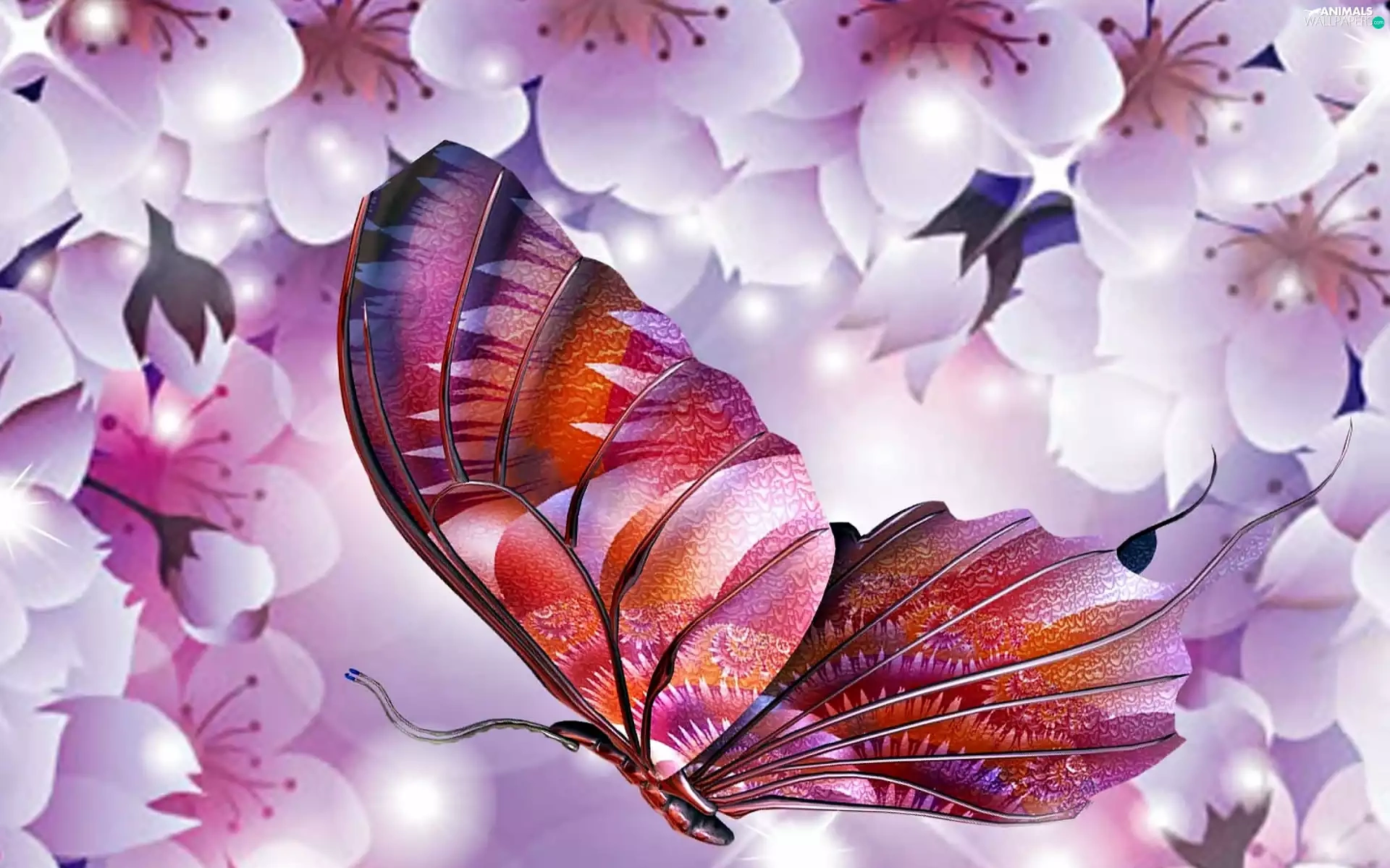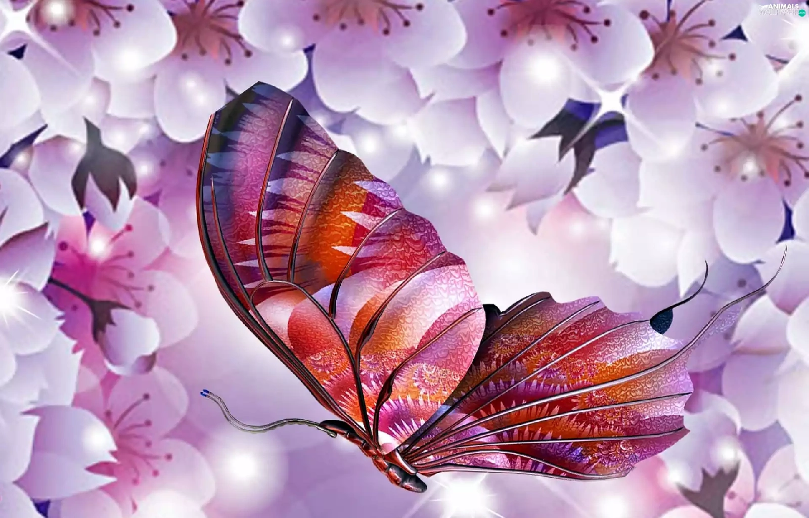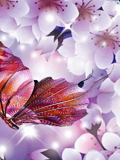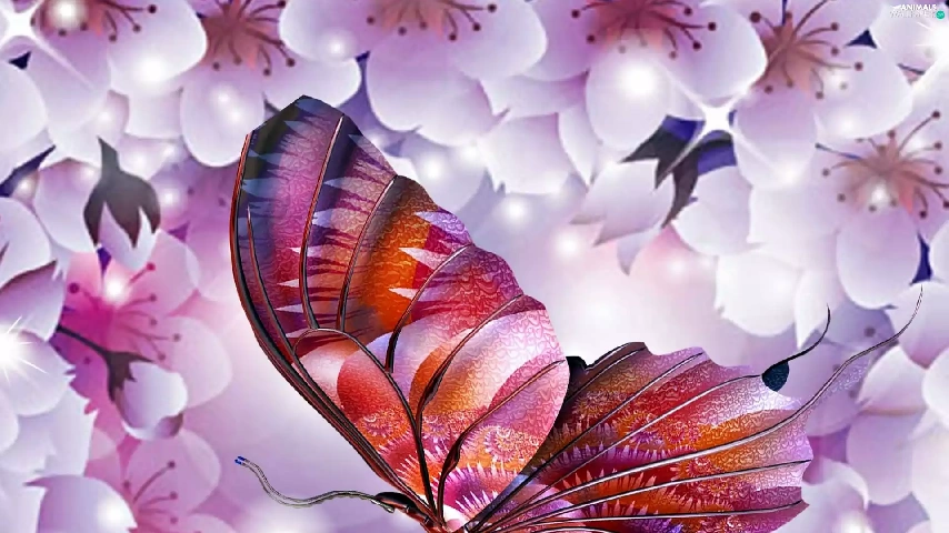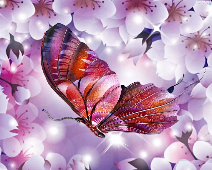 butterfly, Flowers, kirsch