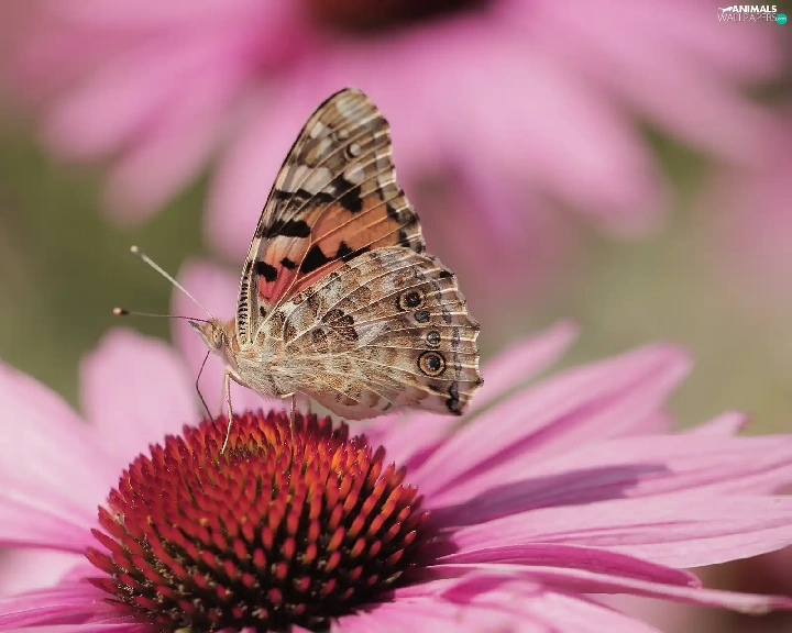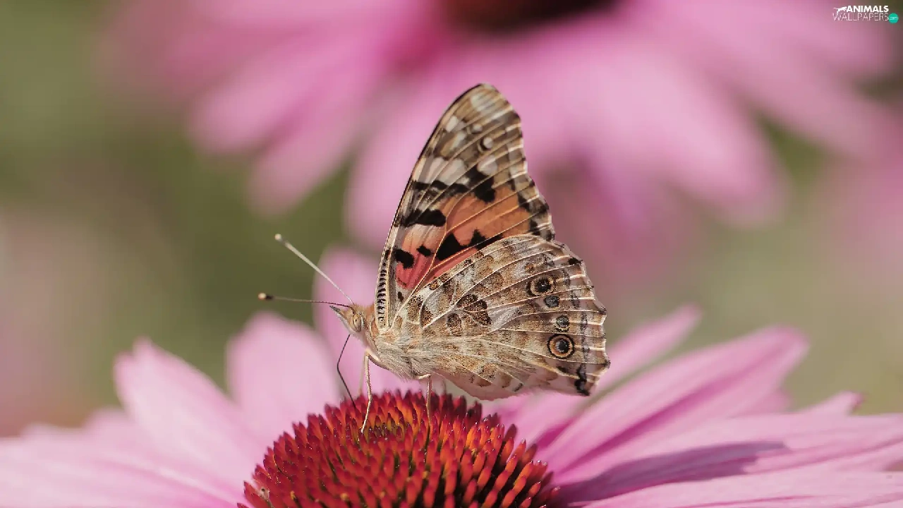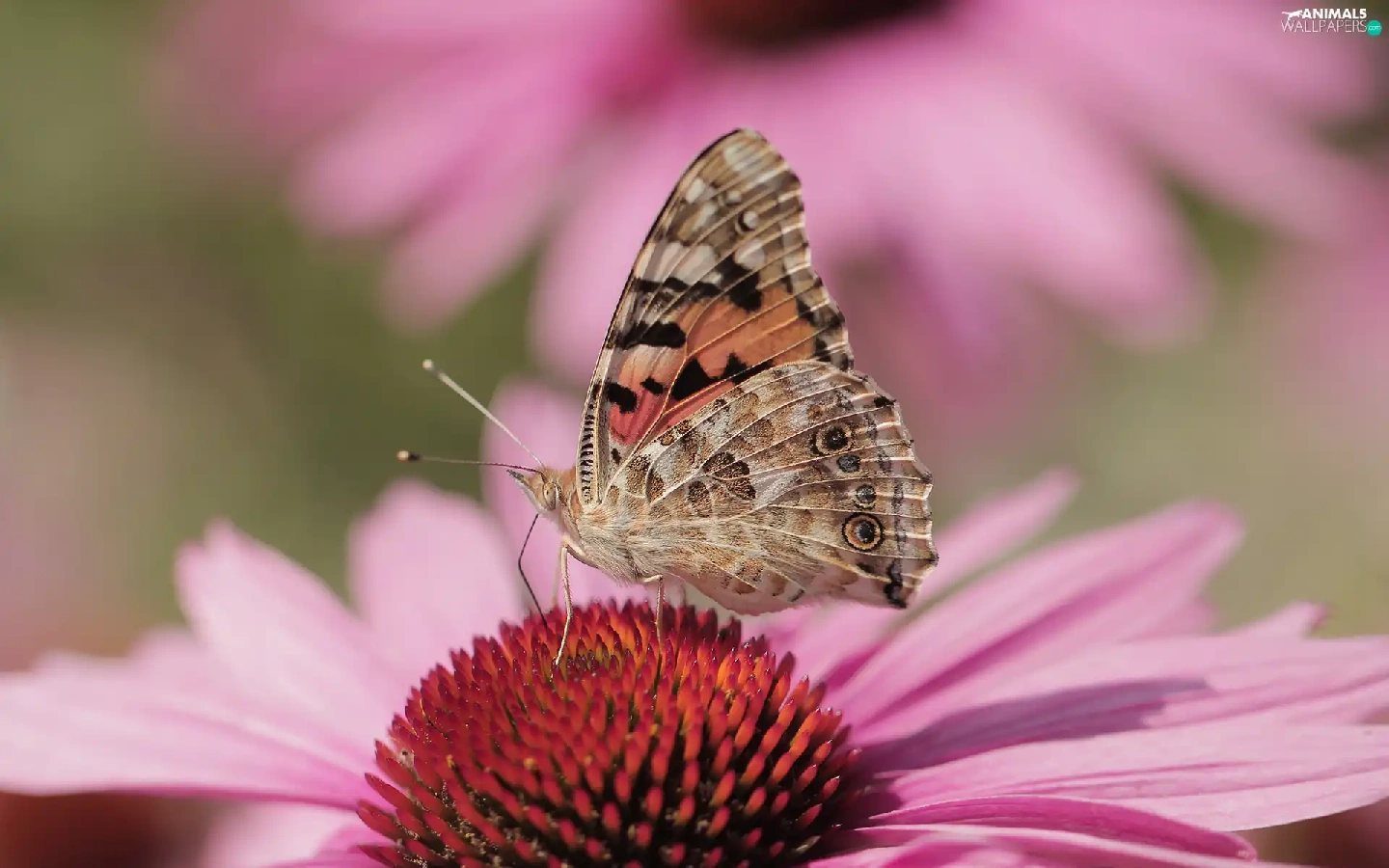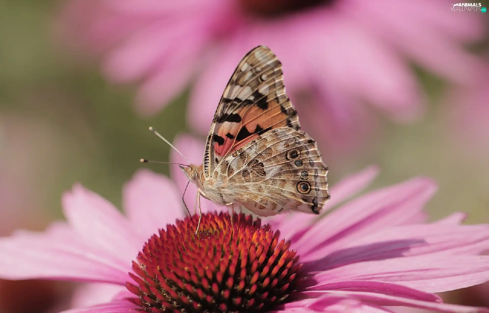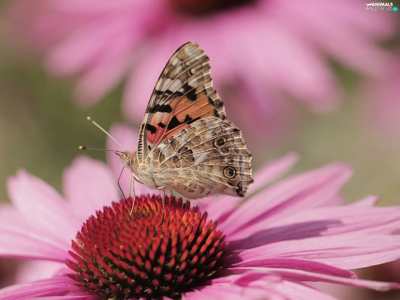 Insect, Painted Lady, Colourfull Flowers, echinacea, Close, butterfly