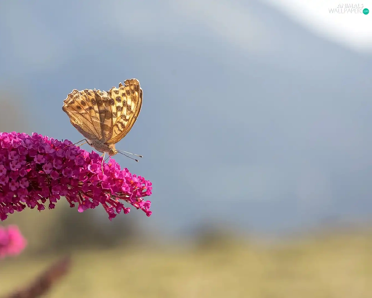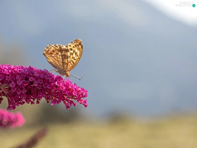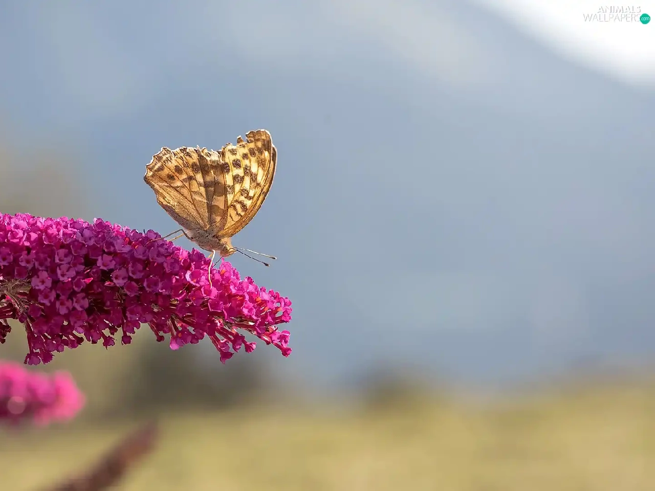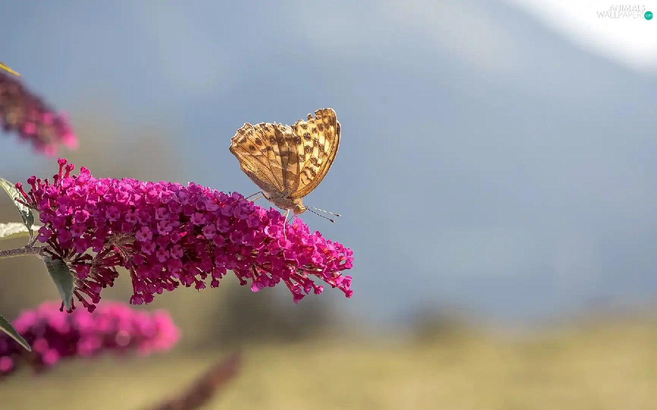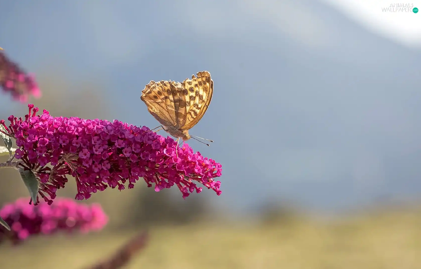 butterfly, Colourfull Flowers, butterfly bush, Pink