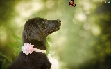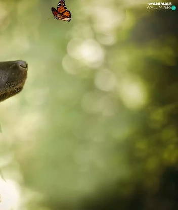 butterfly, dog, green ones, background, Plants, Pointer German Shepherd Dog