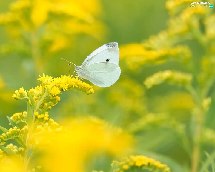 Cabbage Butterfly, White, plant, Goldenrod, Yellow Honda, butterfly