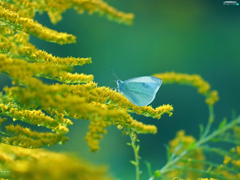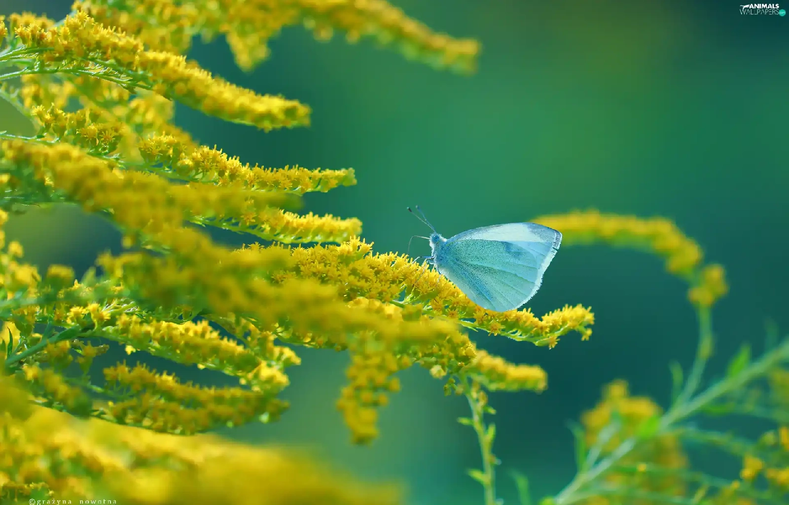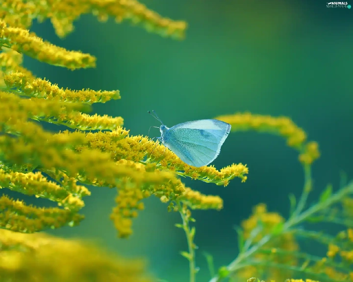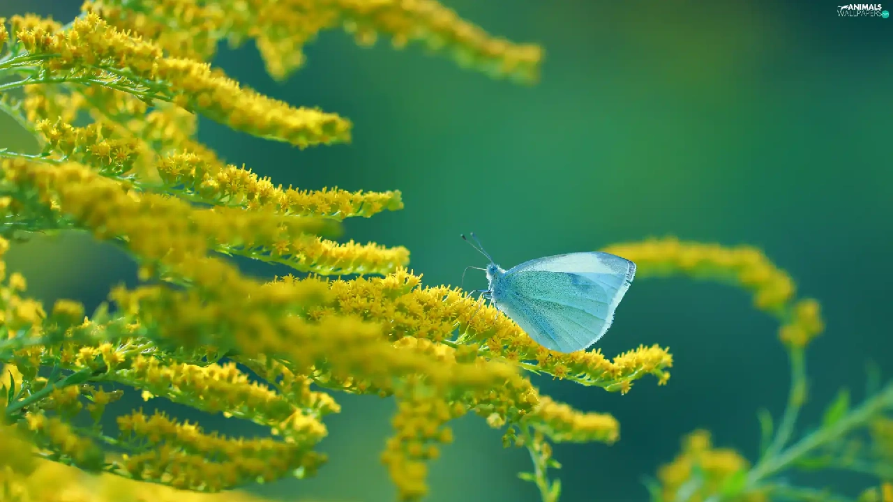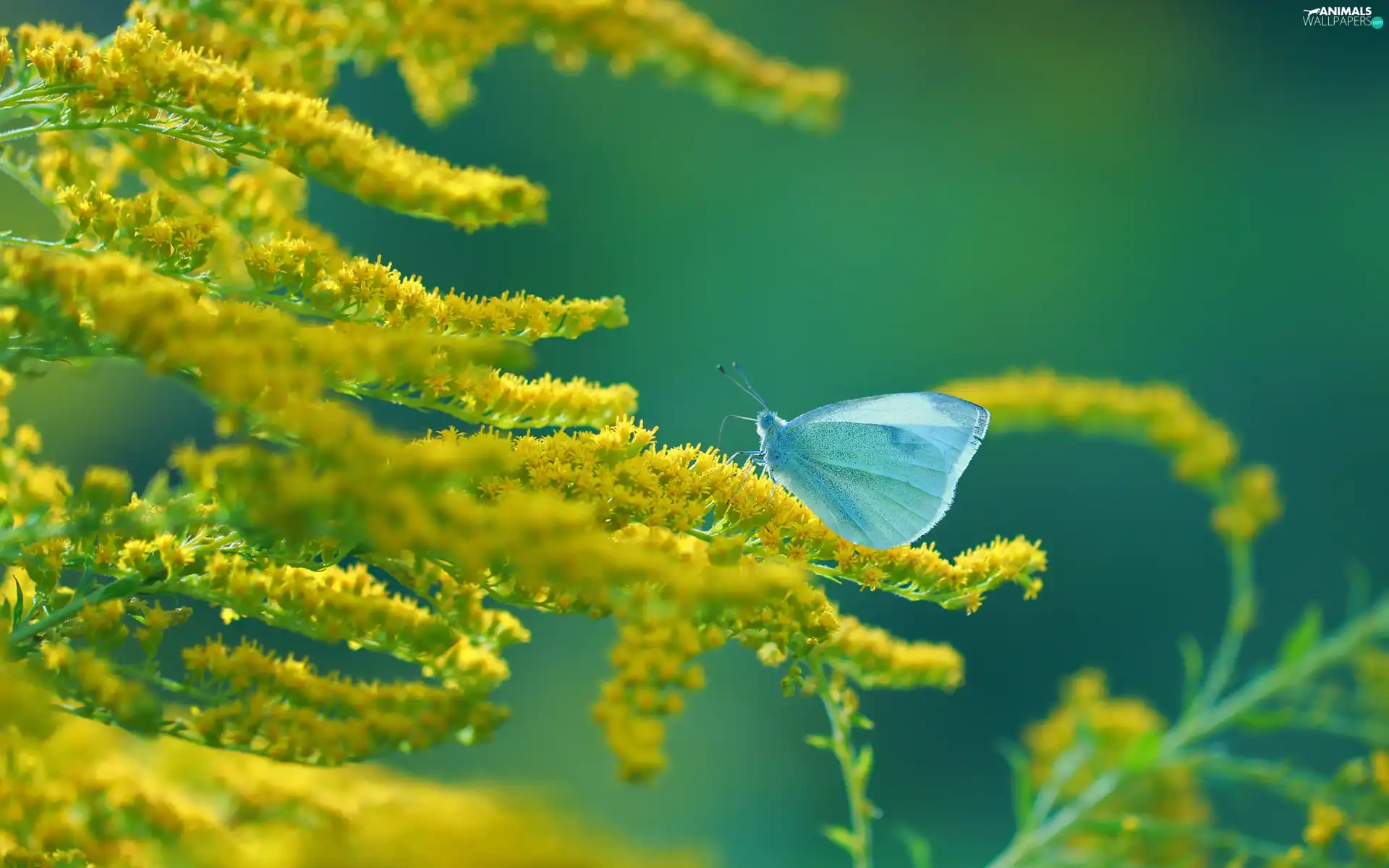 butterfly, Cabbage, Yellow, Flowers, Goldenrod