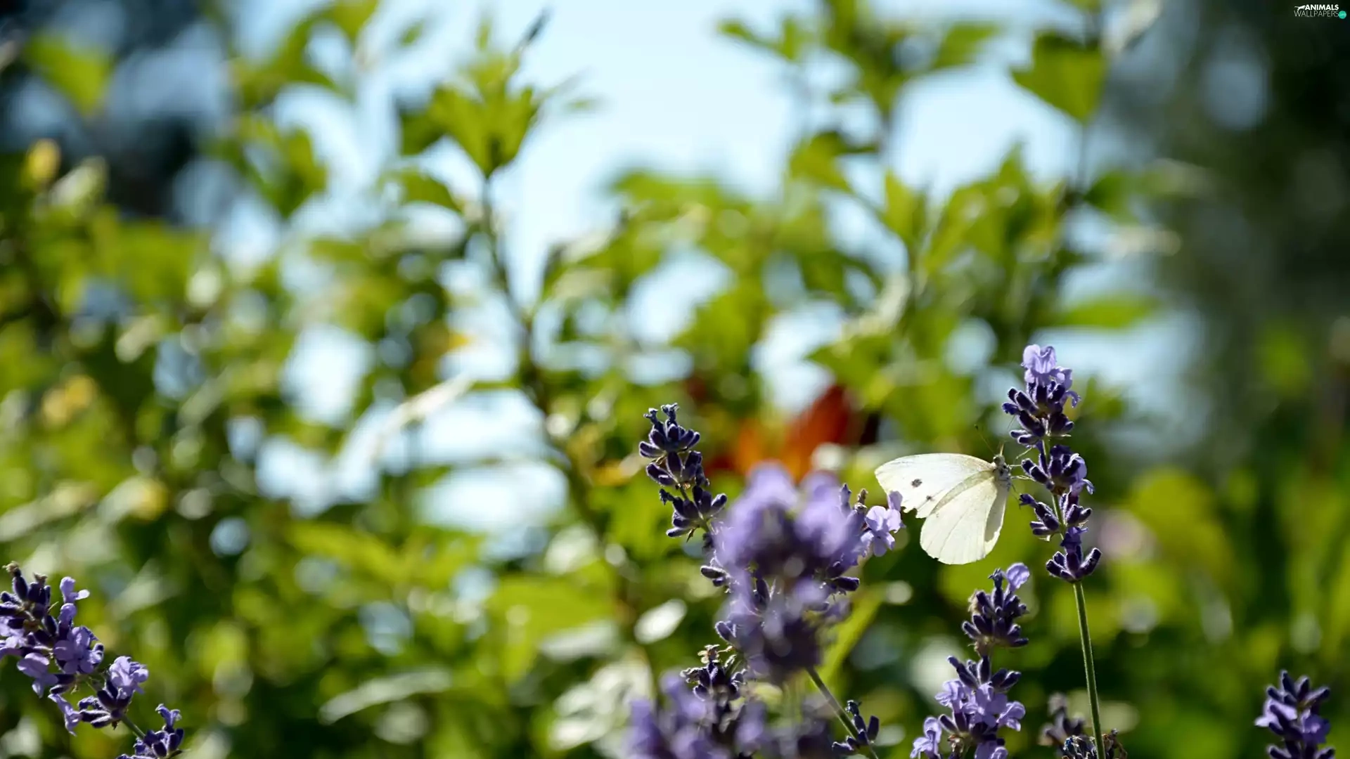 Flowers, lavender, Cabbage, Cabbage Butterfly, butterfly