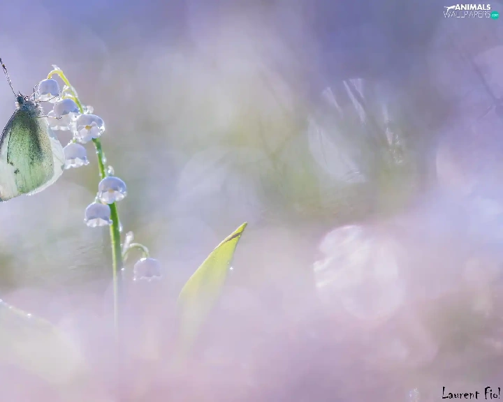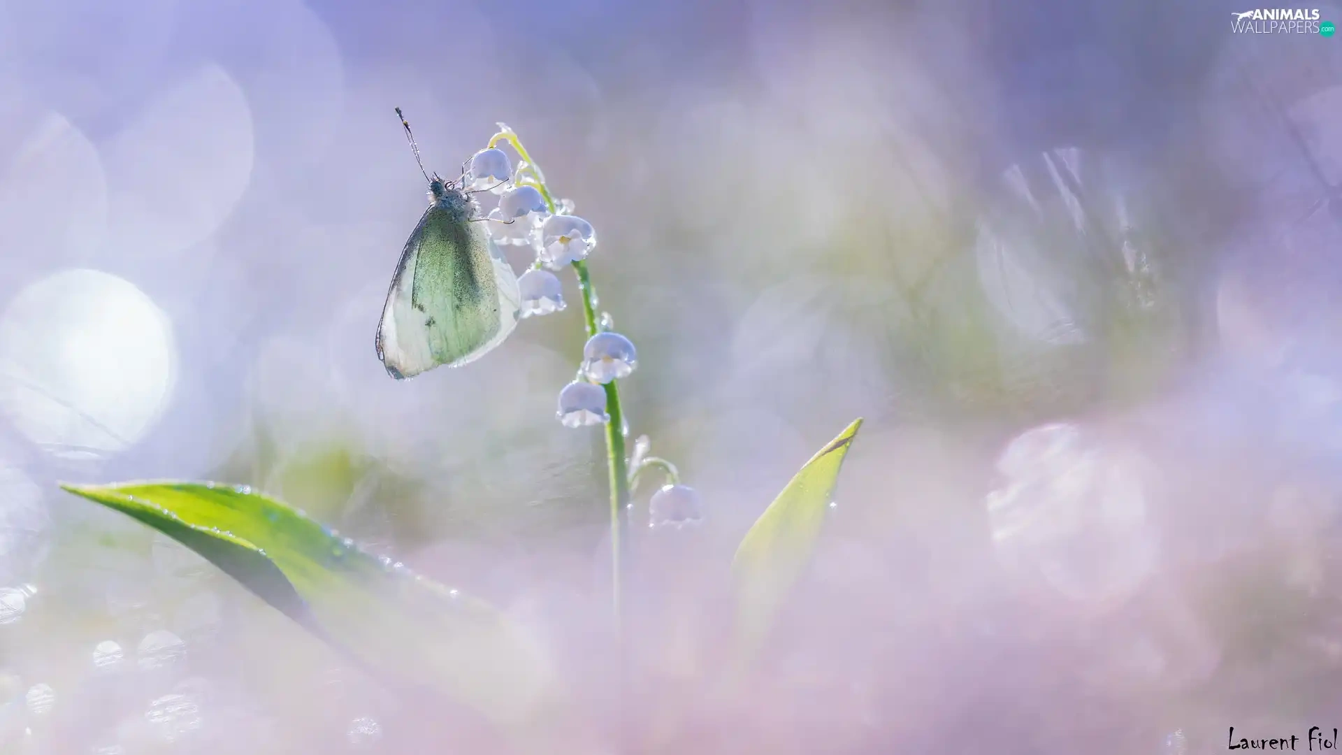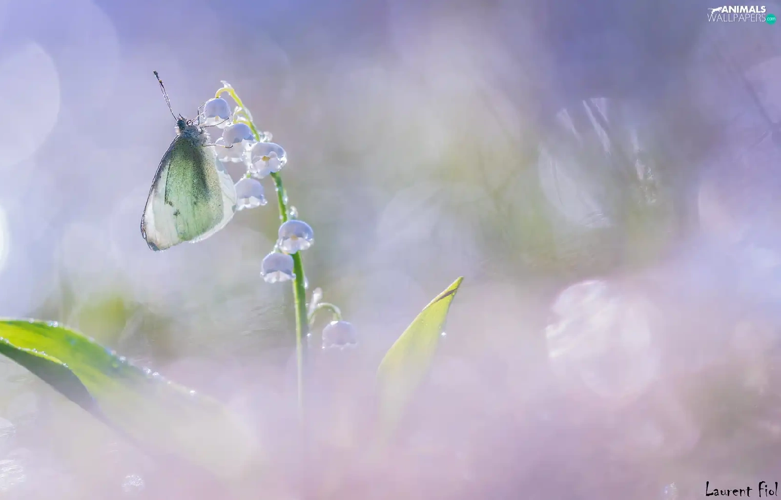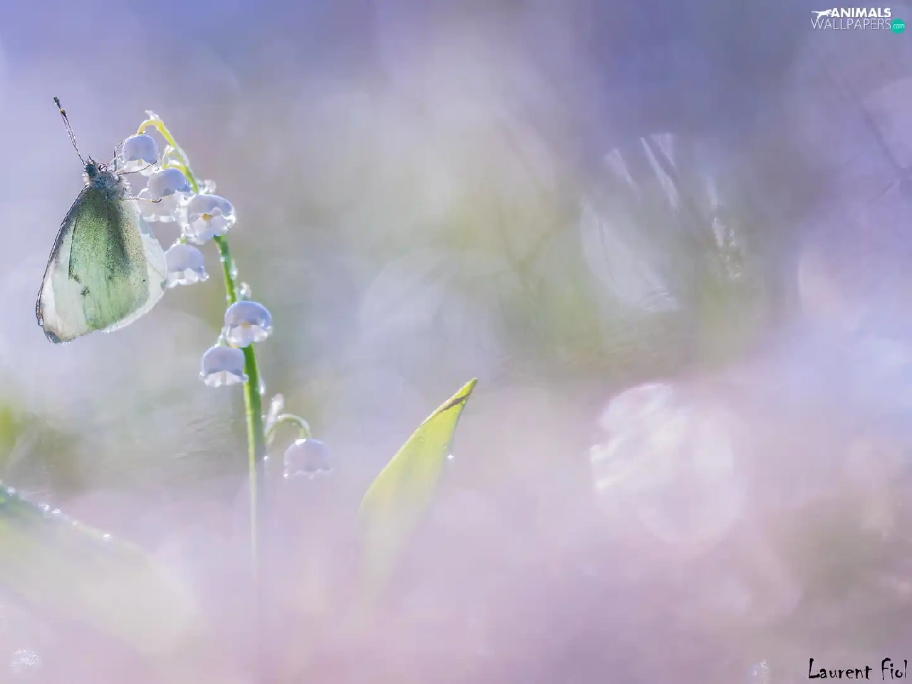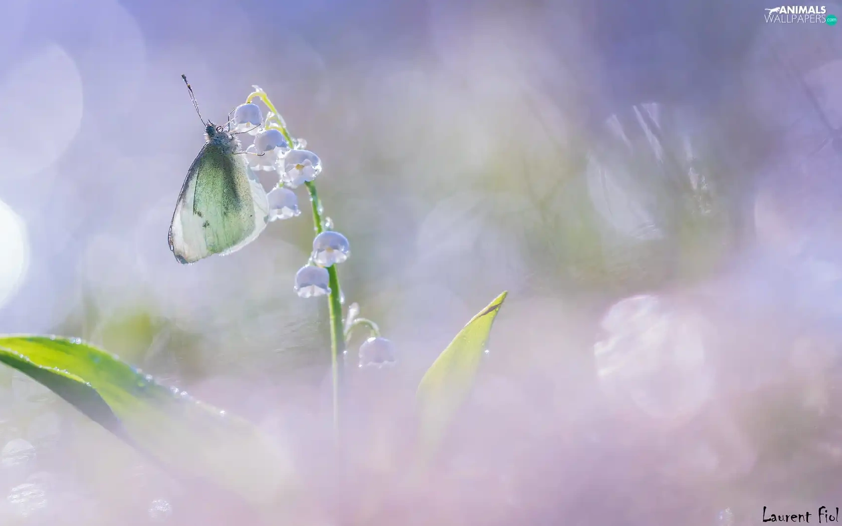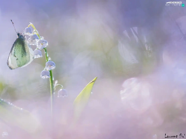 butterfly, Colourfull Flowers, lily of the Valley, Cabbage