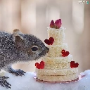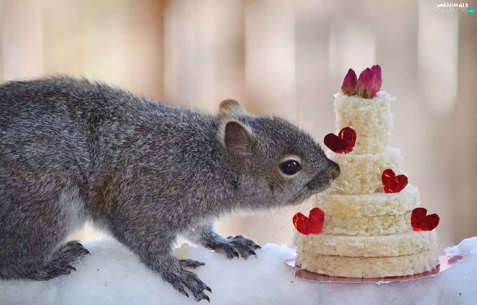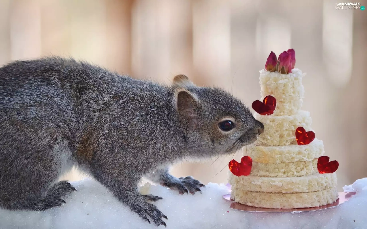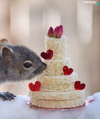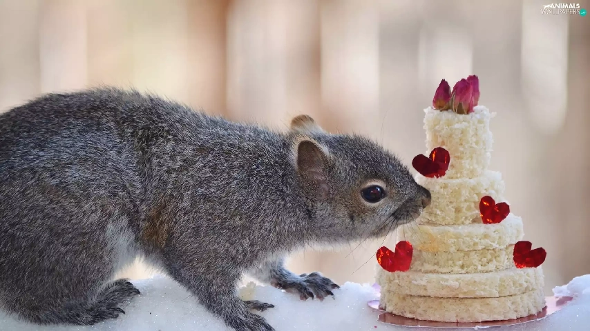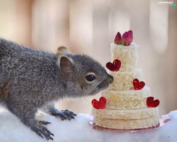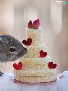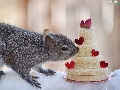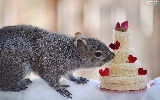 Cake, squirrel, snow