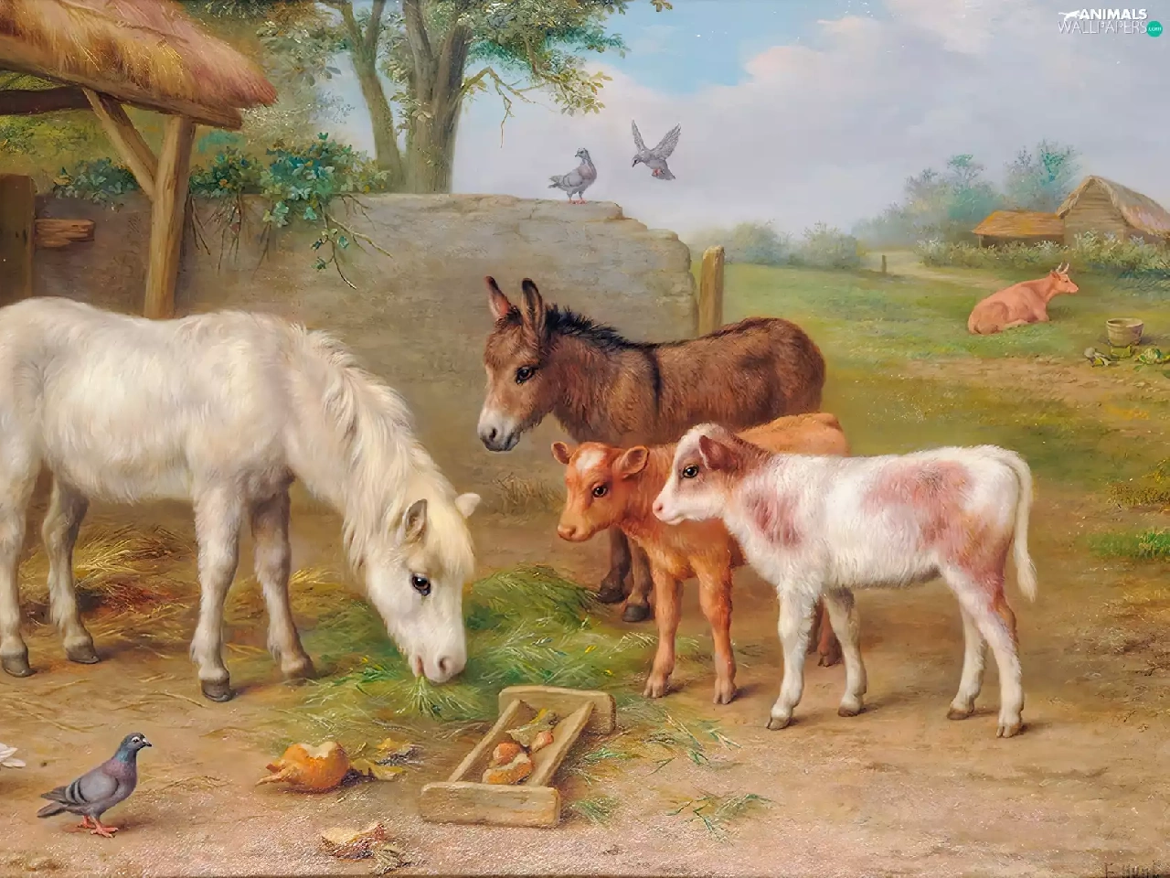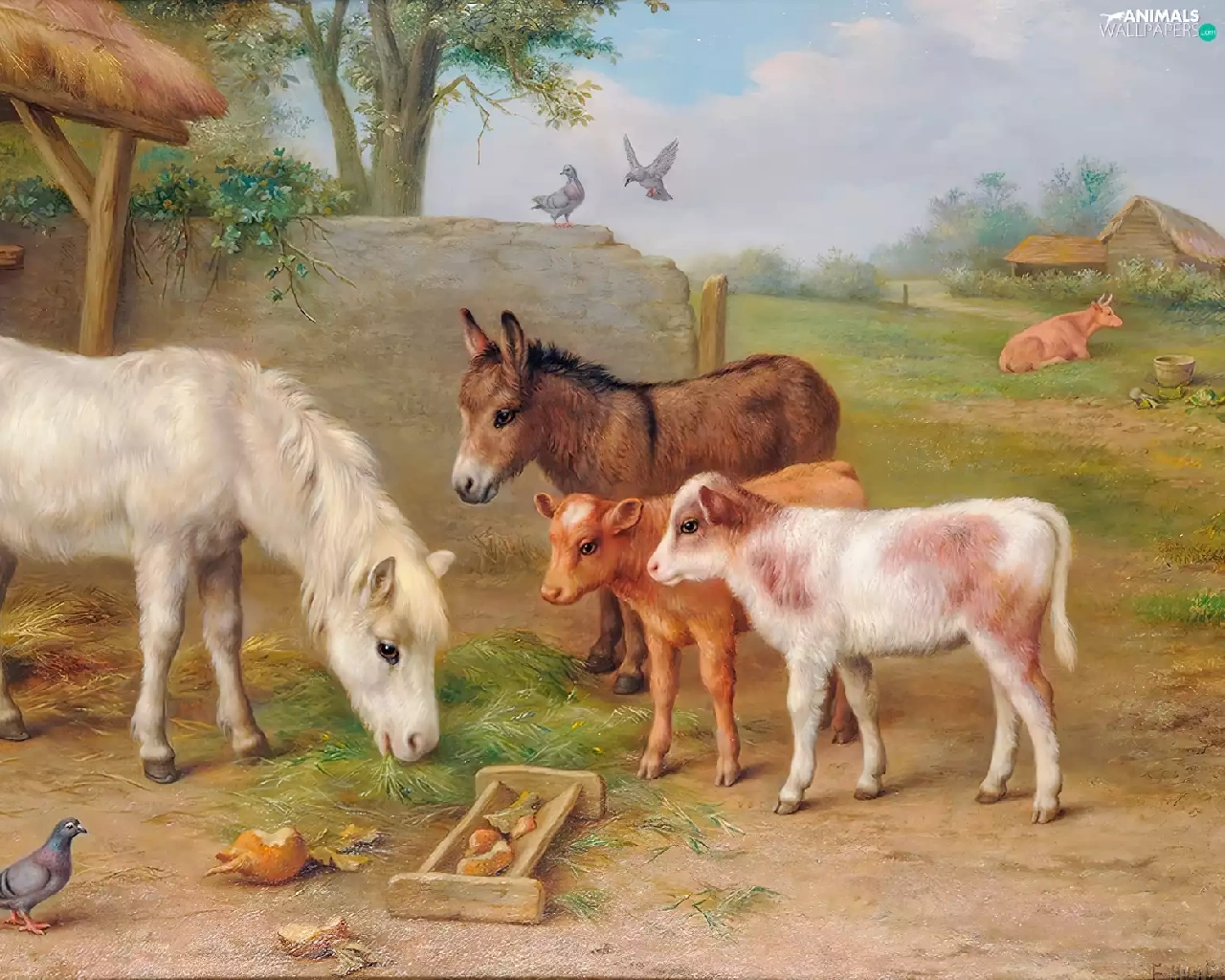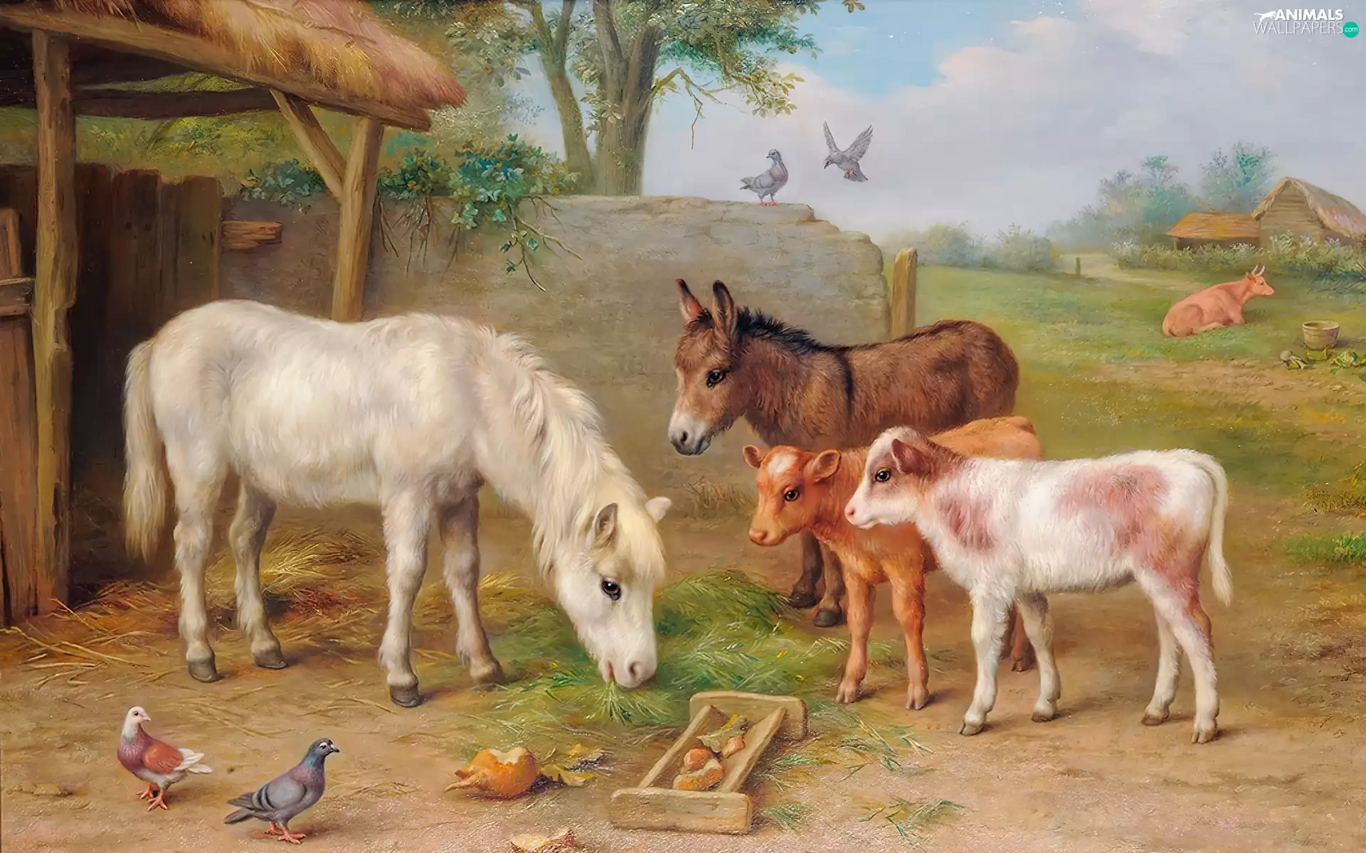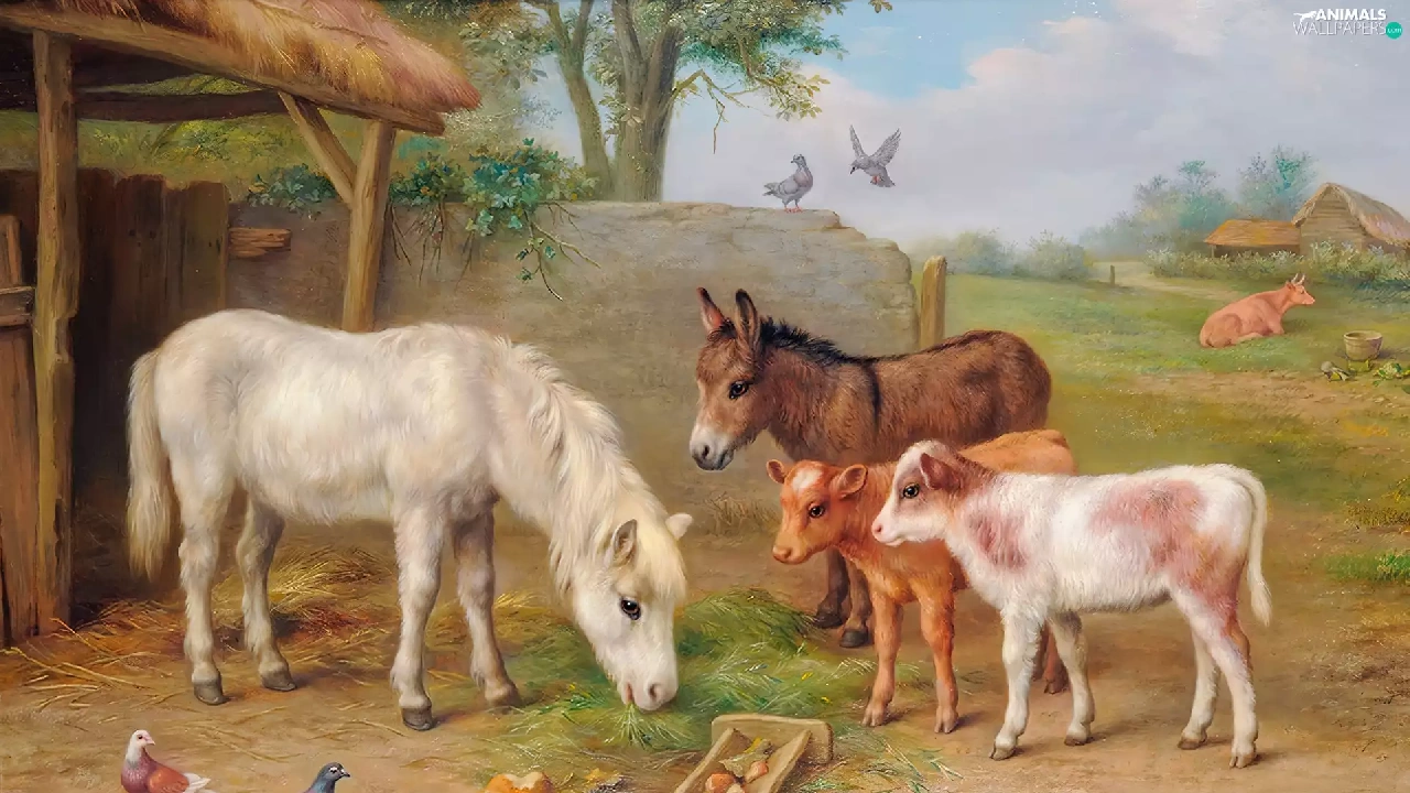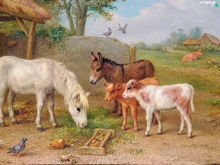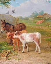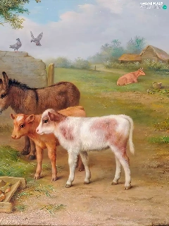 farm, Edgar Hunt, Calves, donkey, sea-horse