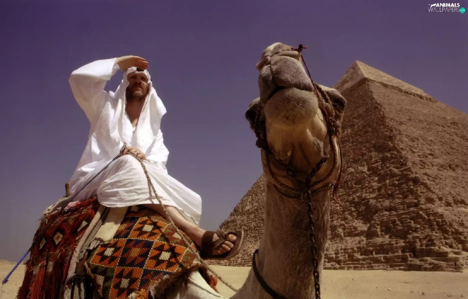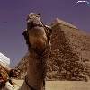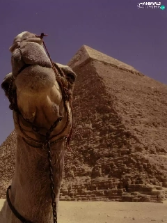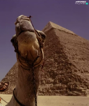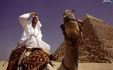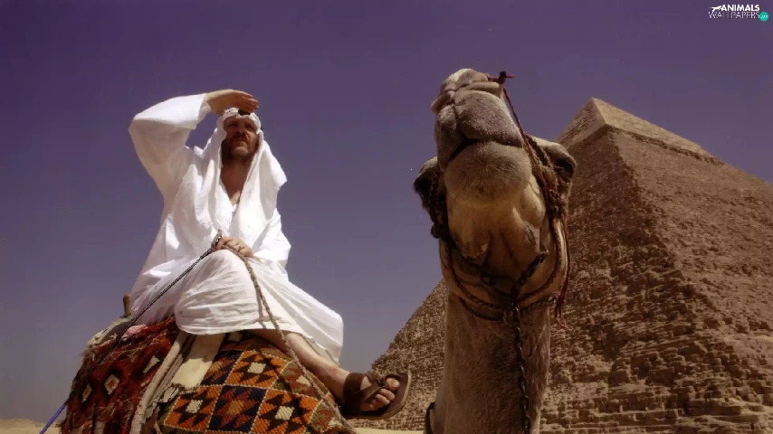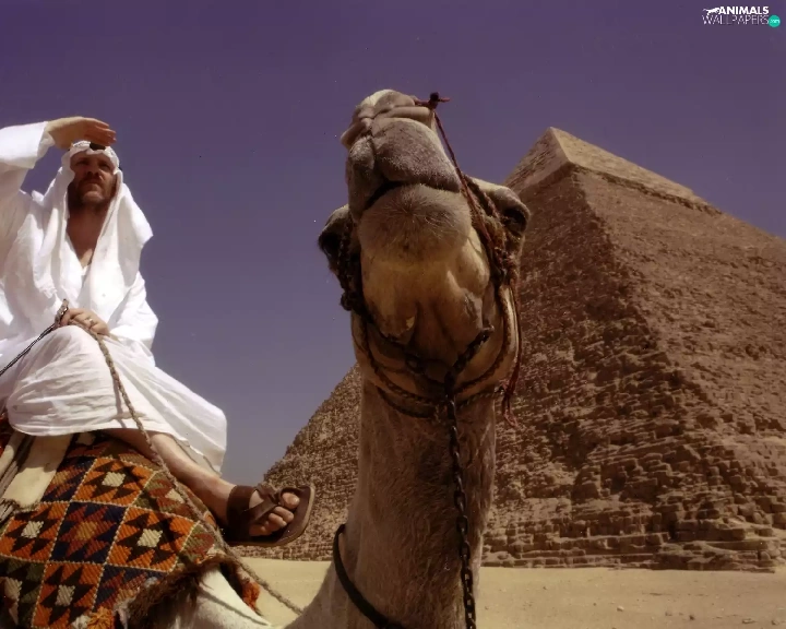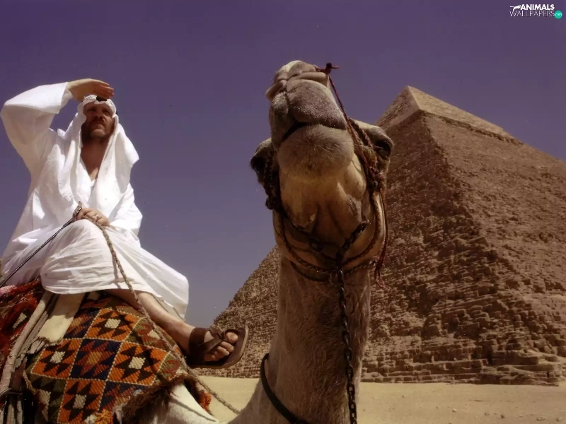 a man, Pyramid, Camel