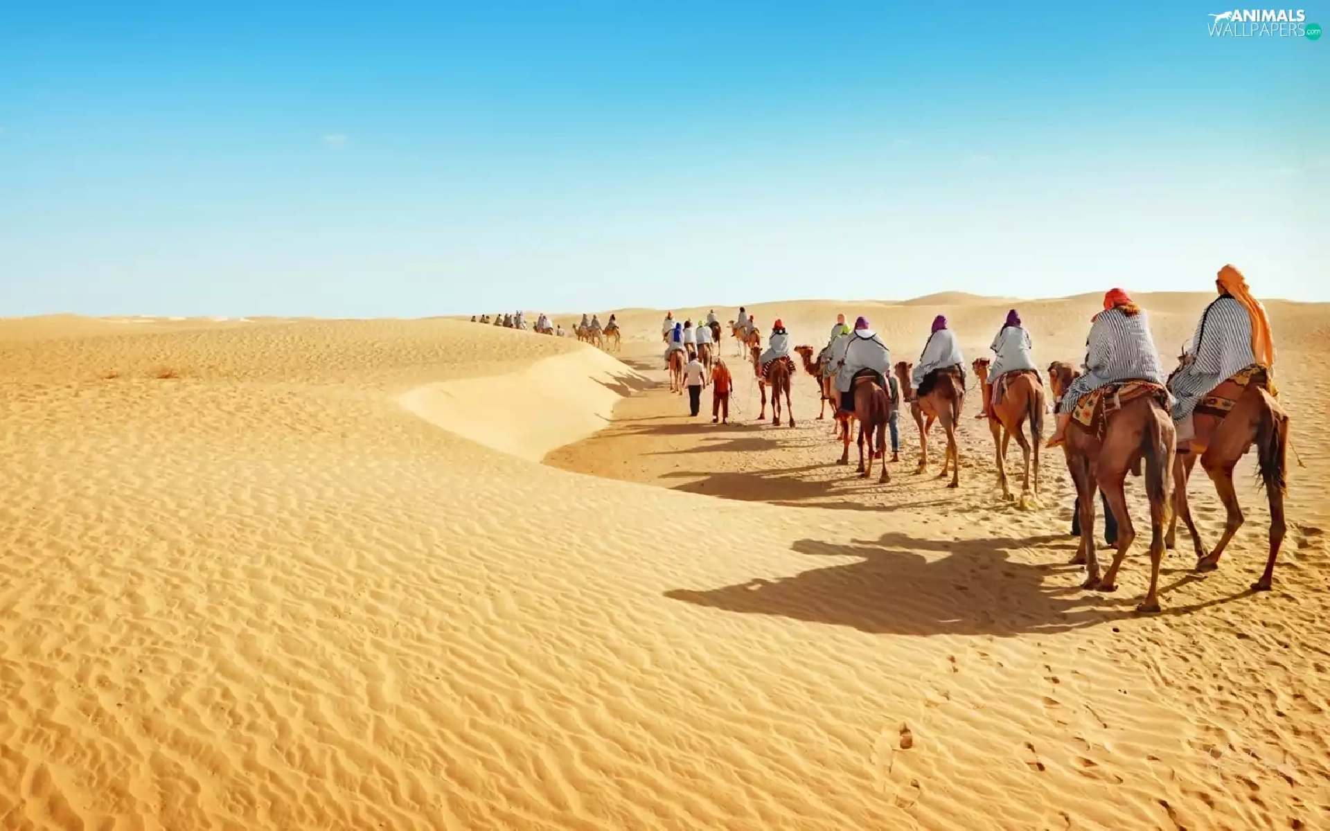 People, caravan, Desert, Camels