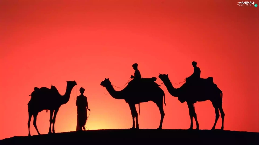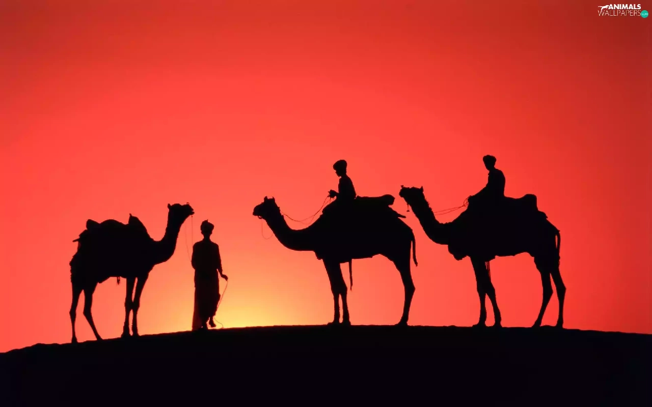Three, west, sun, Camels