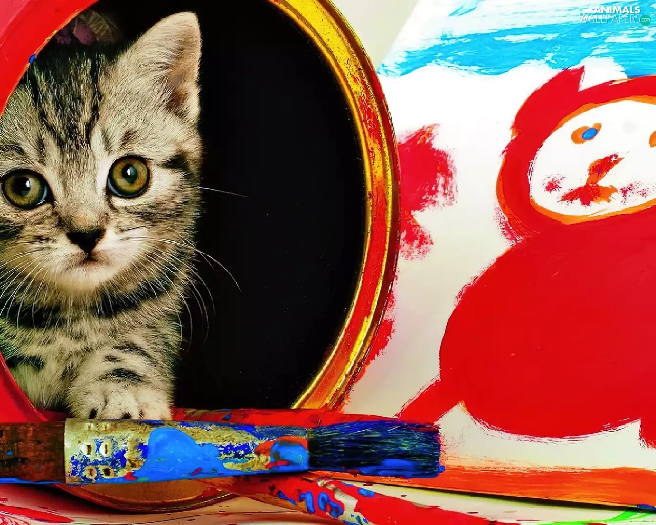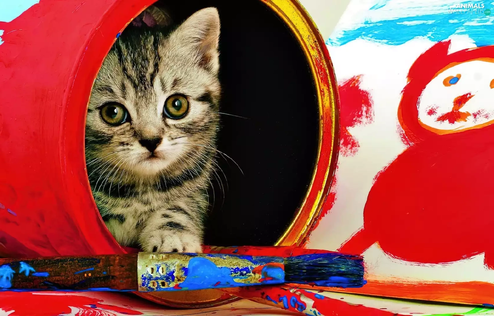kitten, paint, brush, Can