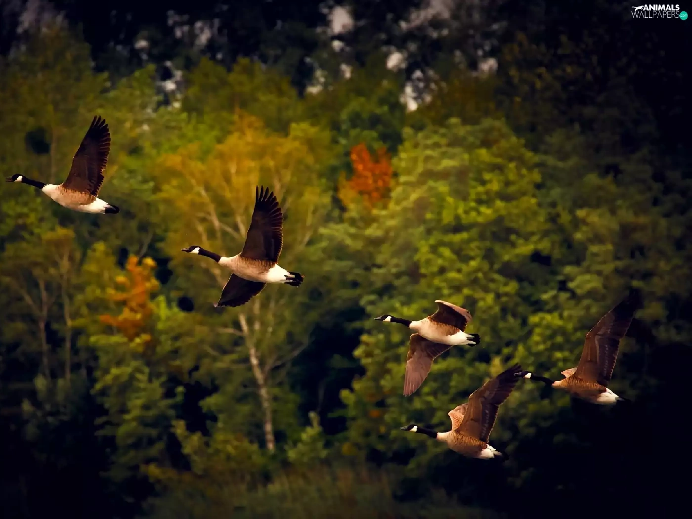 flight, autumn, geese, Canada Goose, wild