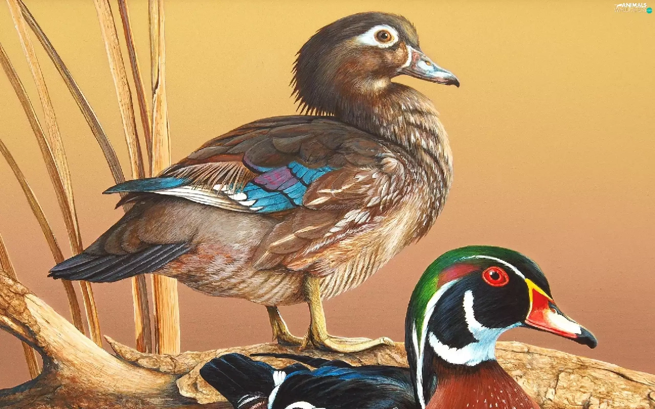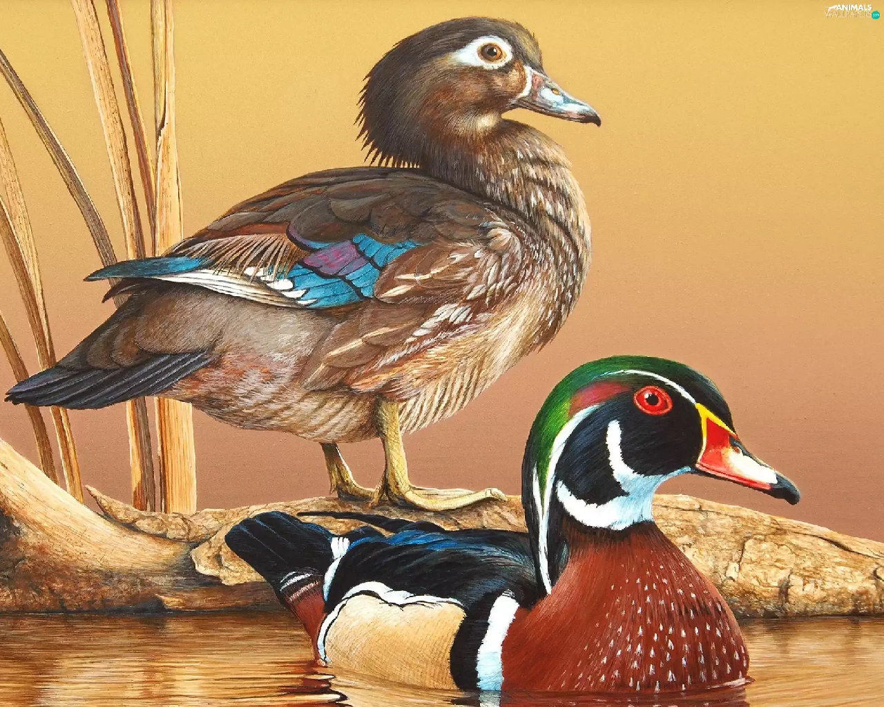 cane, Two, ducks