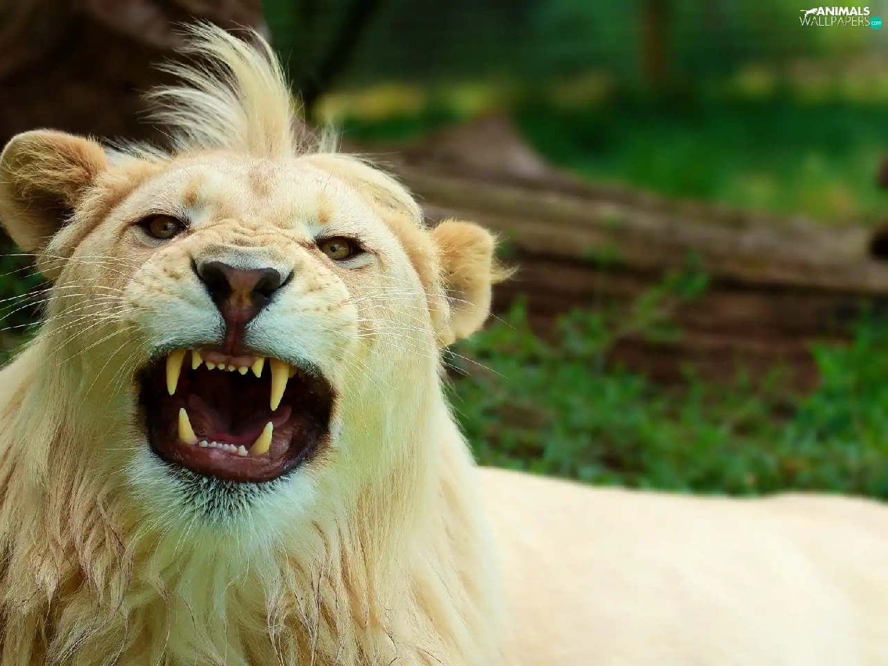 White, bangs, canines, Lion
