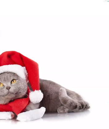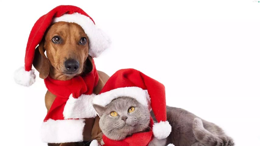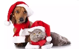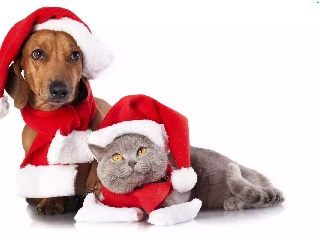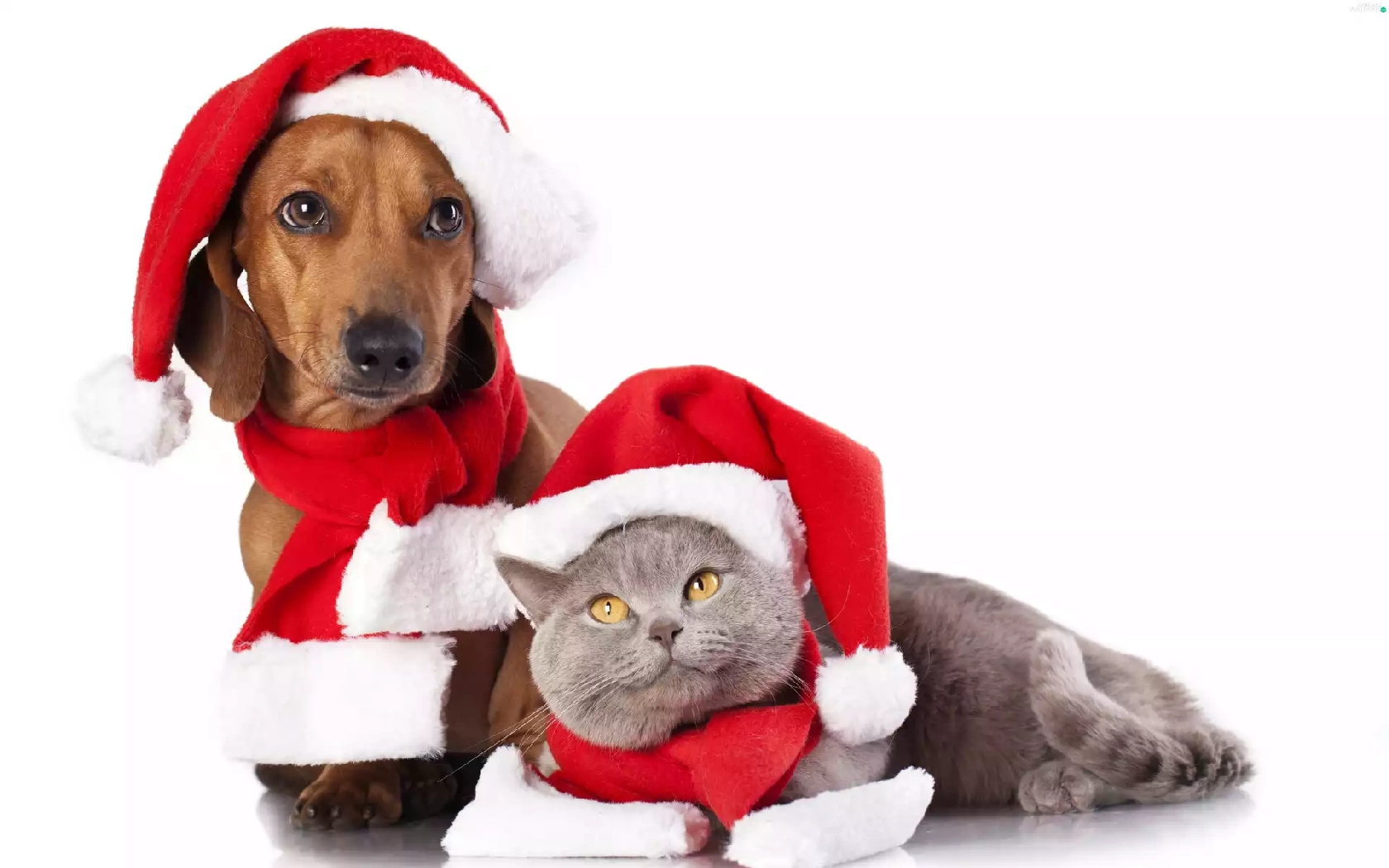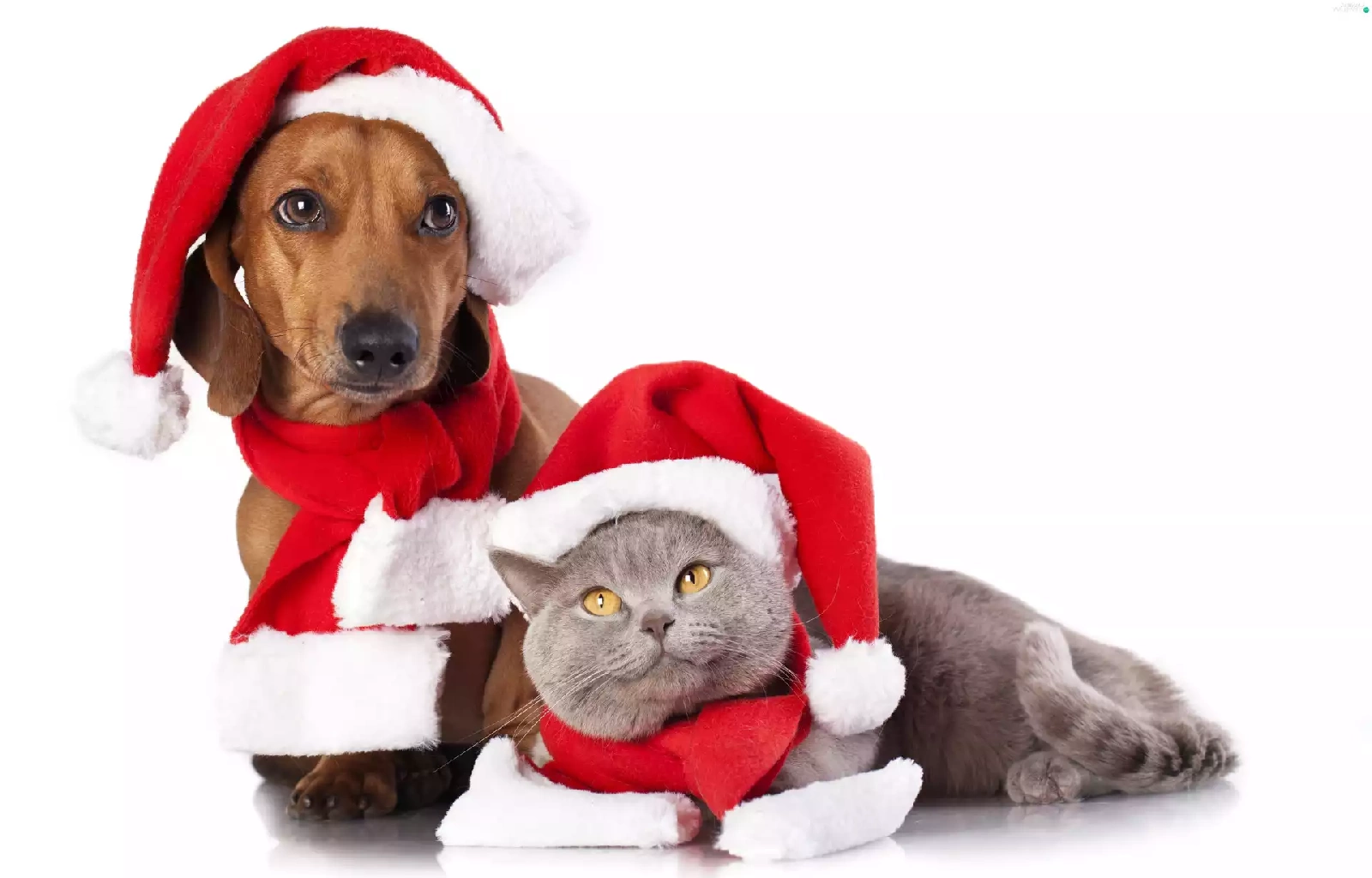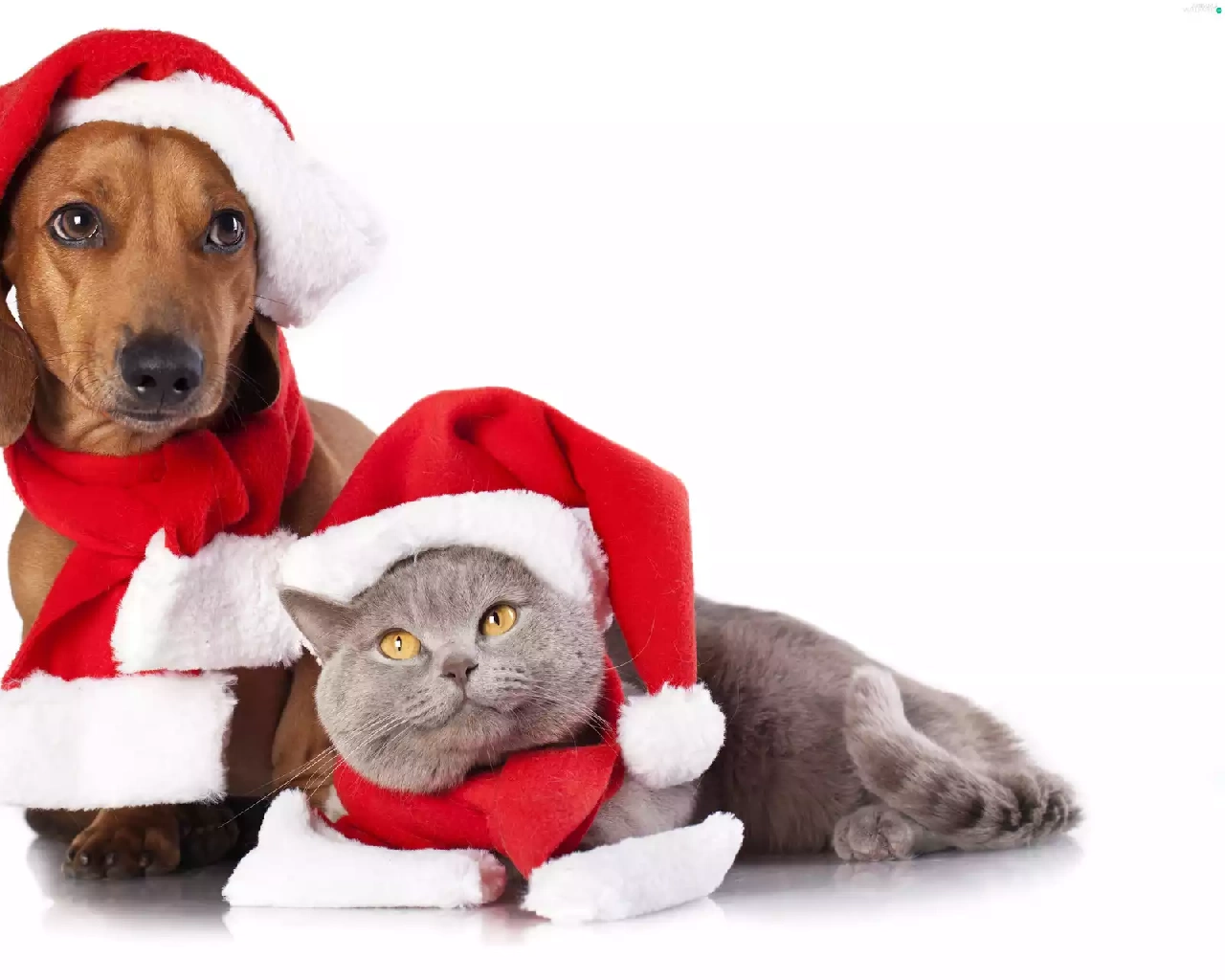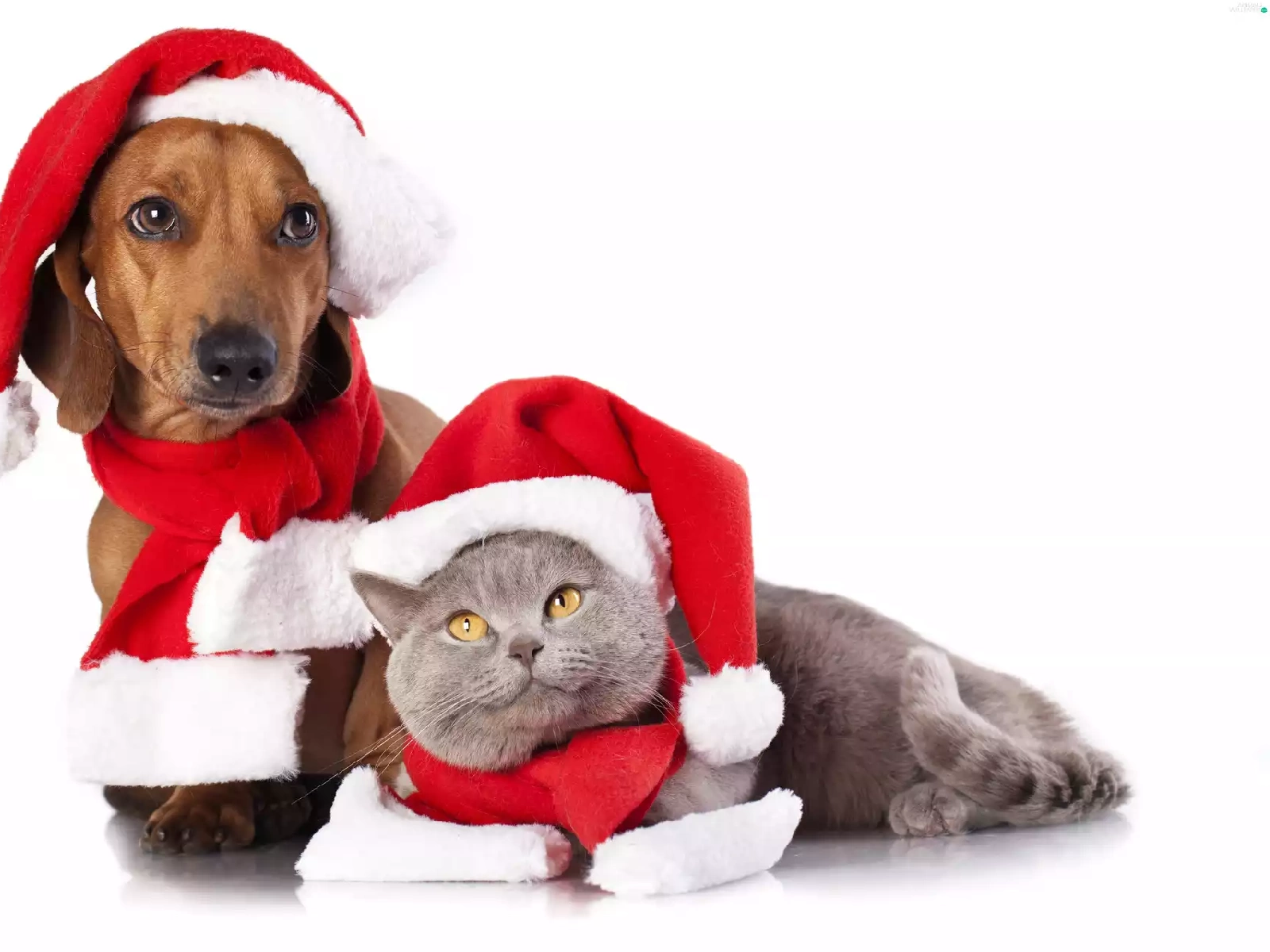 Dachshund, British Cat, caps, Scarves, festively decorated