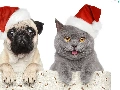 dog, Christmas, caps, cat