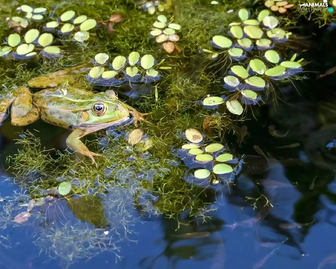 Plants, frog, Pond - car