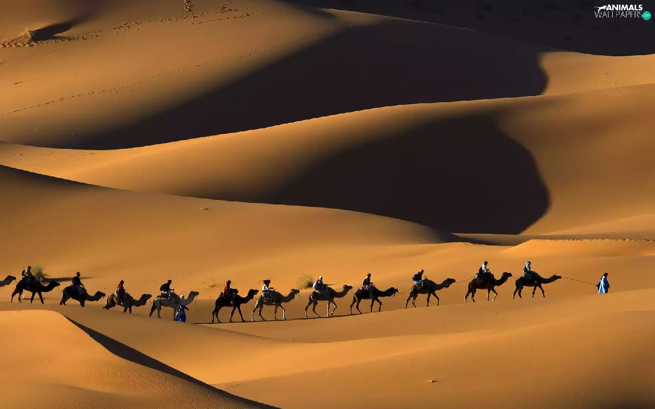 caravan, Desert, Camels