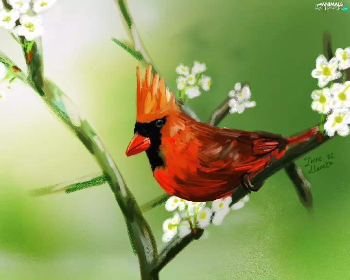 cardinal, twig, Bird