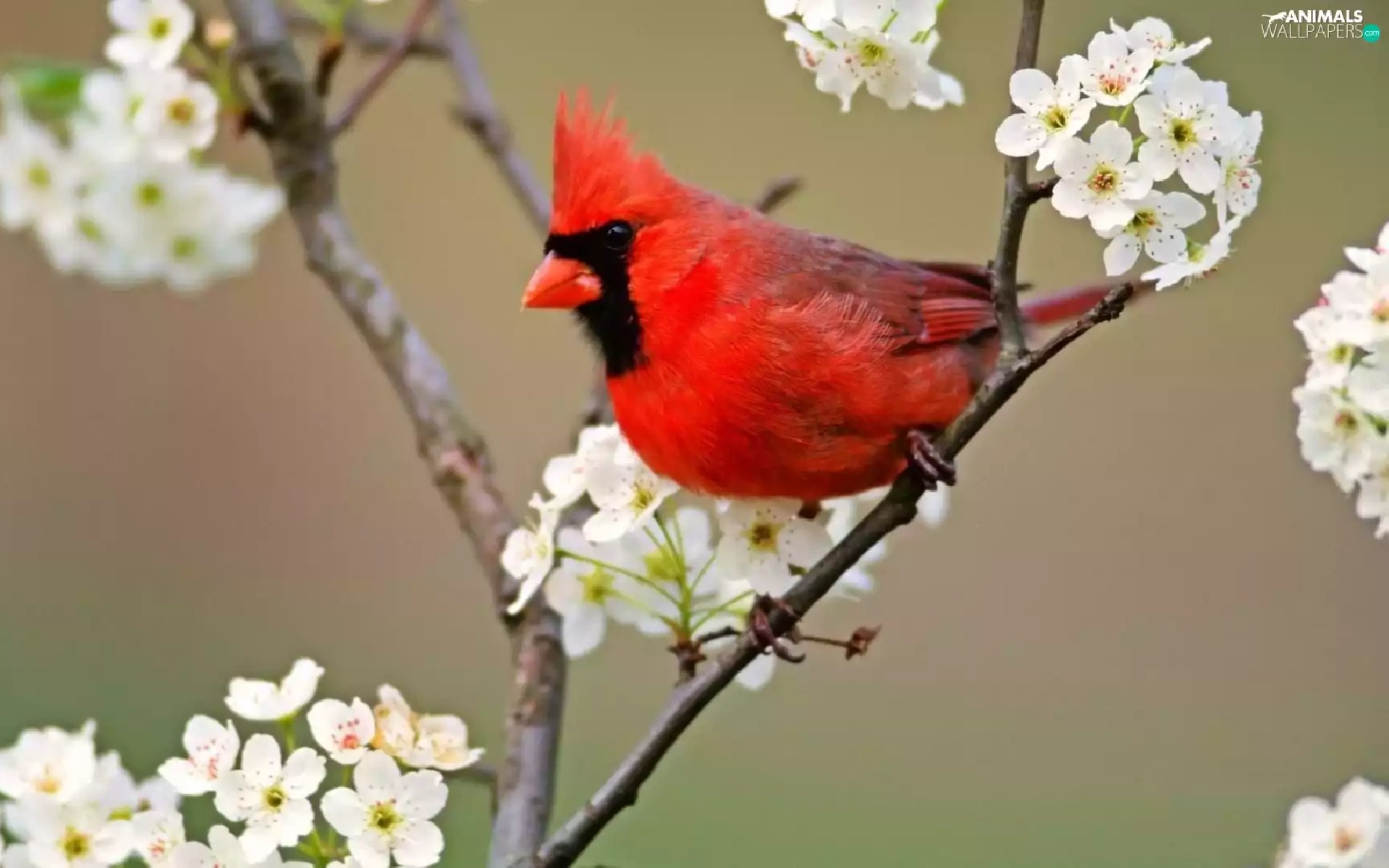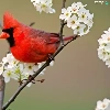 Bird, Flowers, twig, cardinal