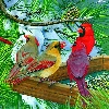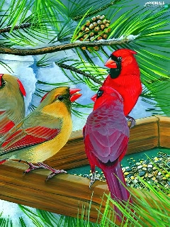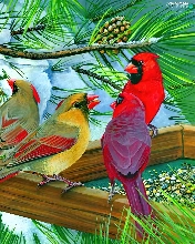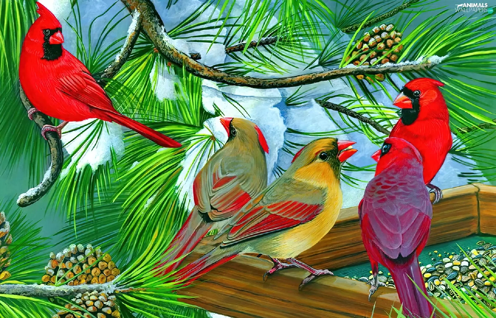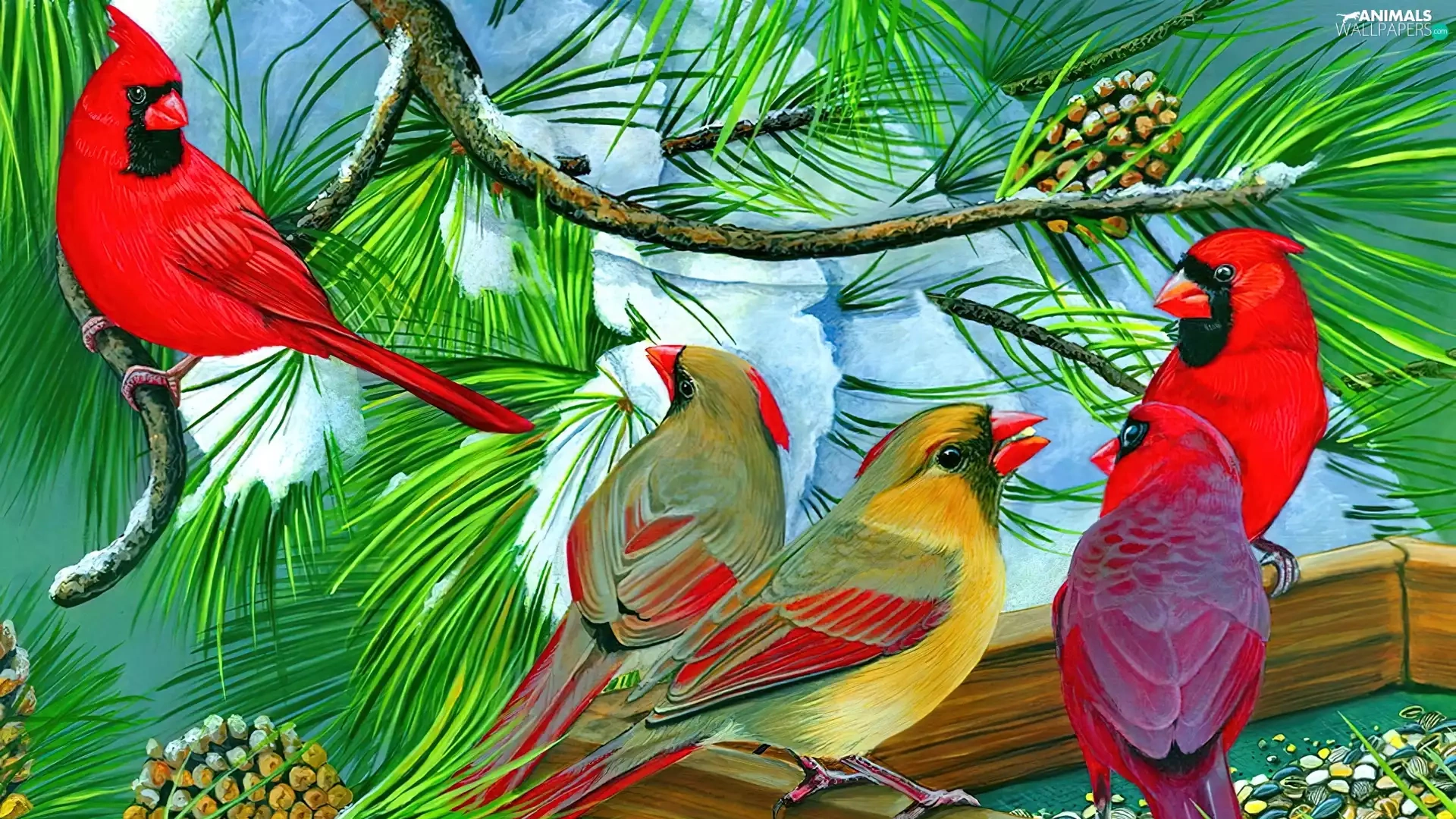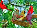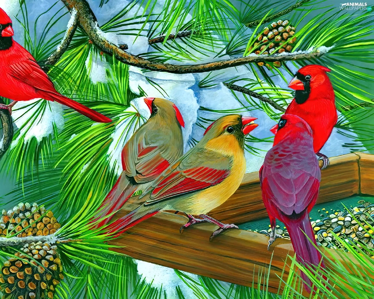birds, conifer, Bird, Cardinals